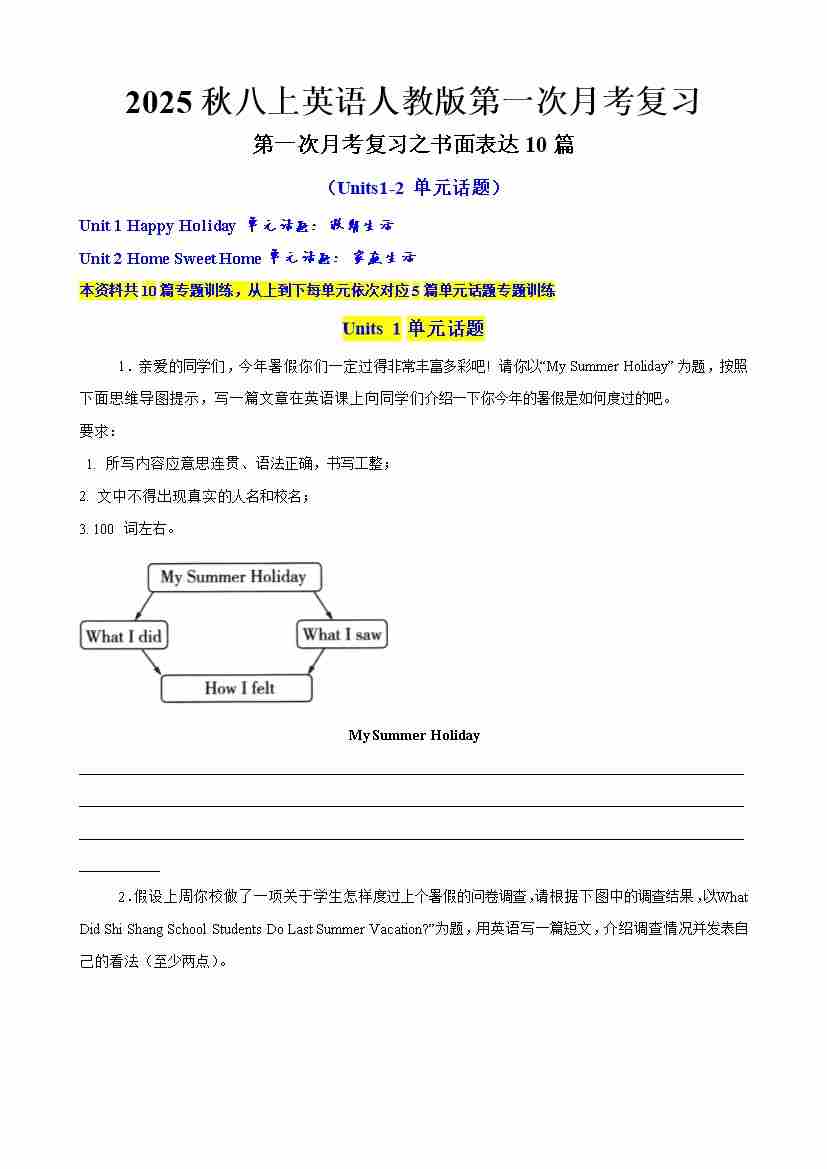 2025秋八上英语人教版第一次月考复习(原卷版)word