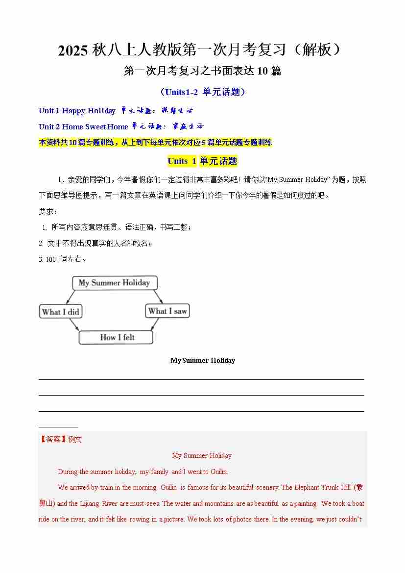 2025秋八上英语人教版第一次月考复习((解析版)word