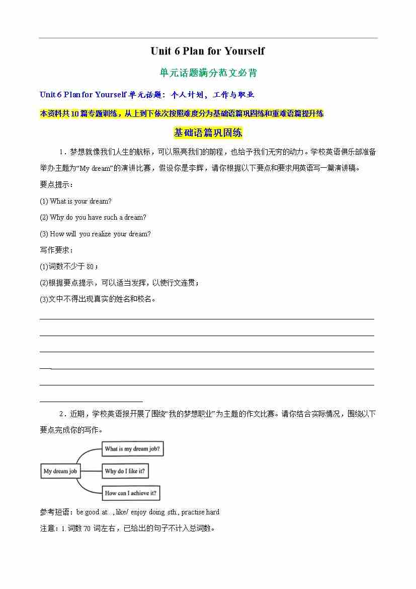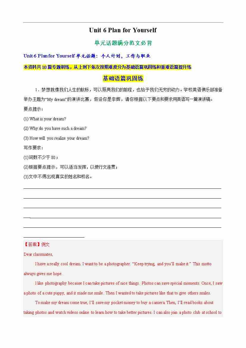 Unit 6 Plan for Yourself 单元话题满分范文必背(原卷版)