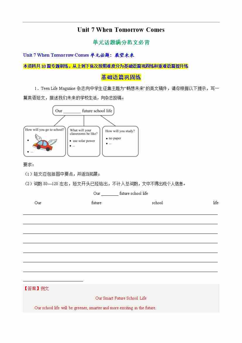 Unit 7 When Tomorrow Comes单元话题满分范文必背(解析版)