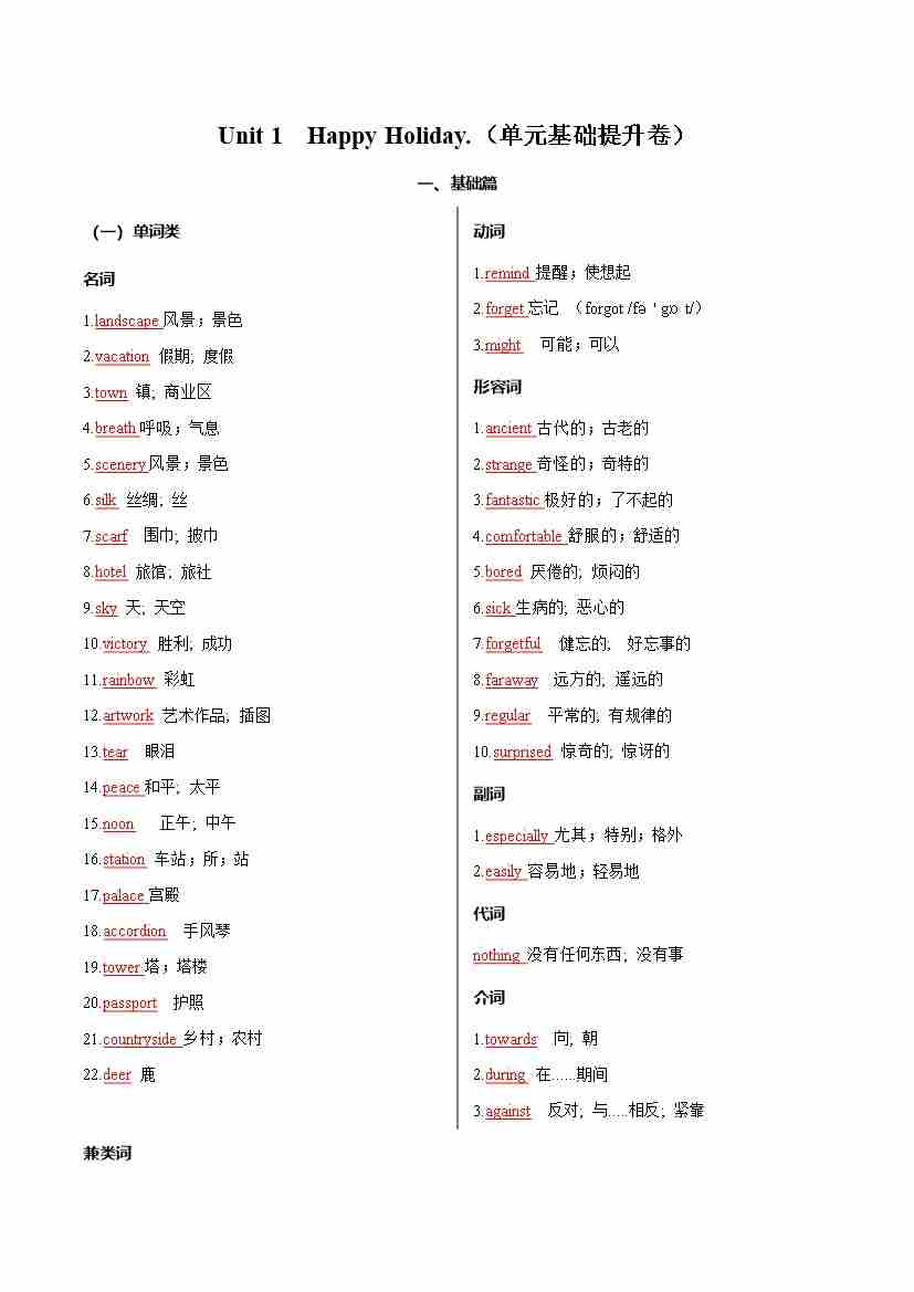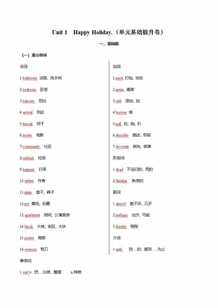 Unit 1 Happy Holiday.【单元基础提升卷】(解析版)