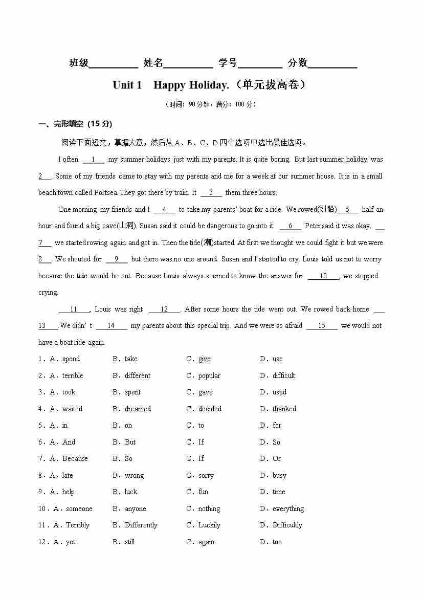 Unit 1 Happy Holiday.【单元拔高卷】(原卷版)