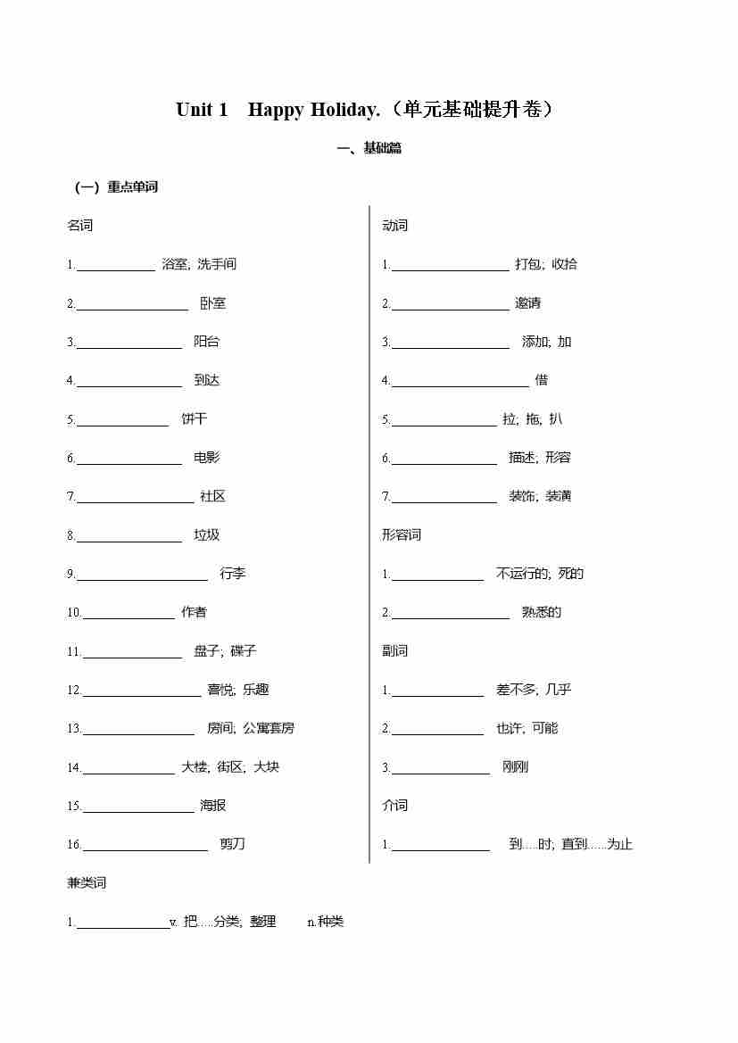 Unit 1 Happy Holiday.【单元基础提升卷】(原卷版)