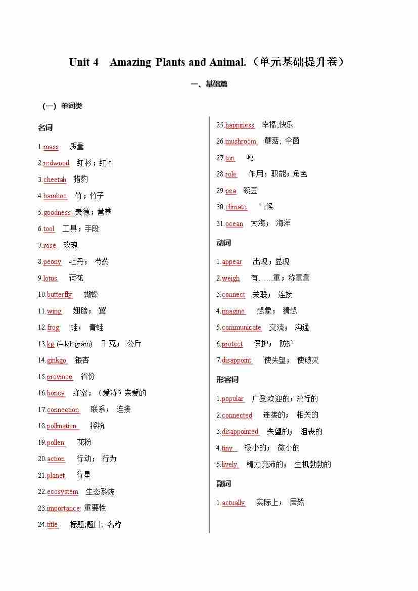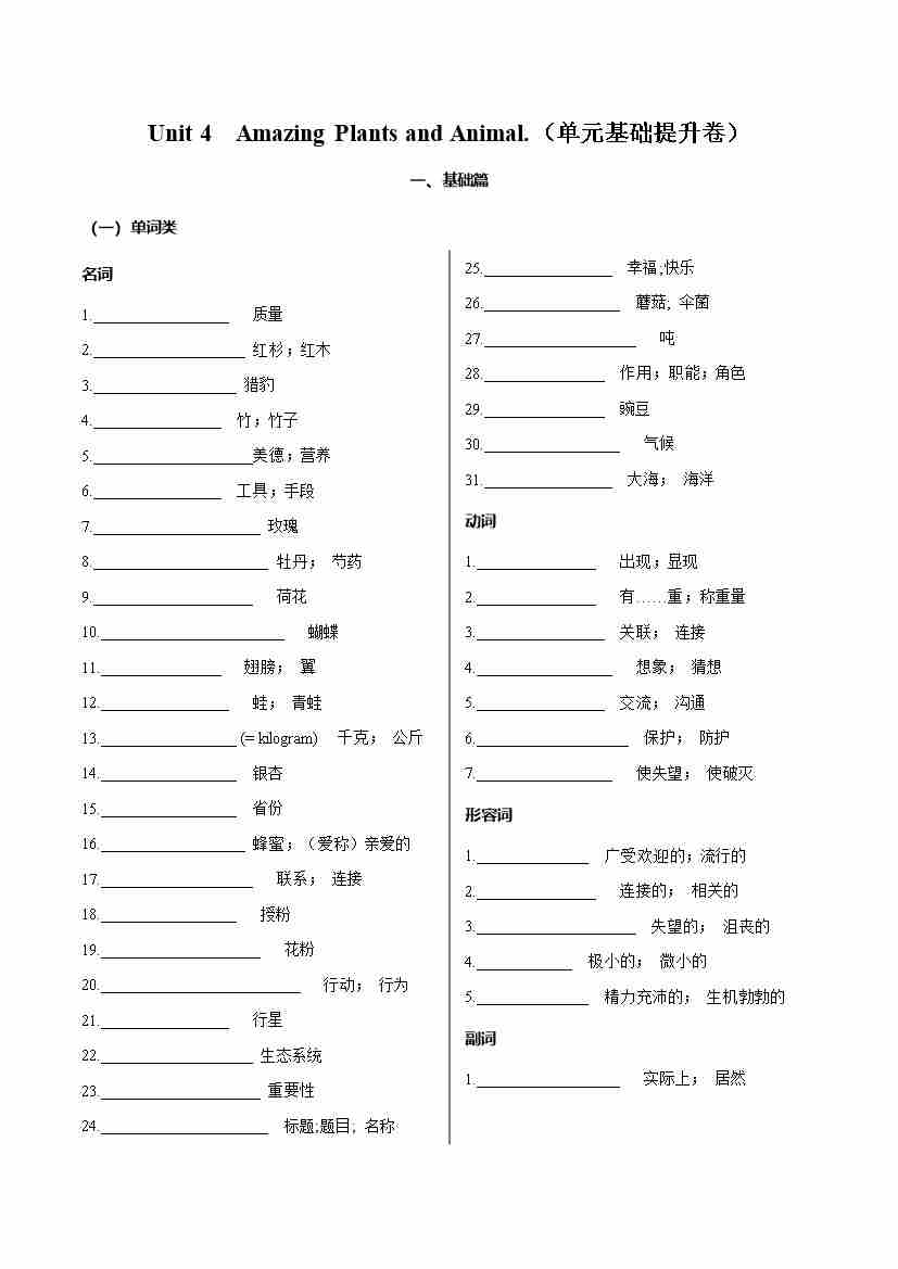 Unit 4 Amazing Plants and Animal.【单元基础提升卷】(原卷版)
