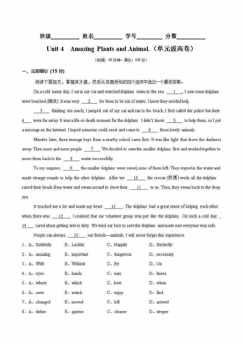 Unit 4 Amazing Plants and Animal.【单元拔高卷】(原卷版)