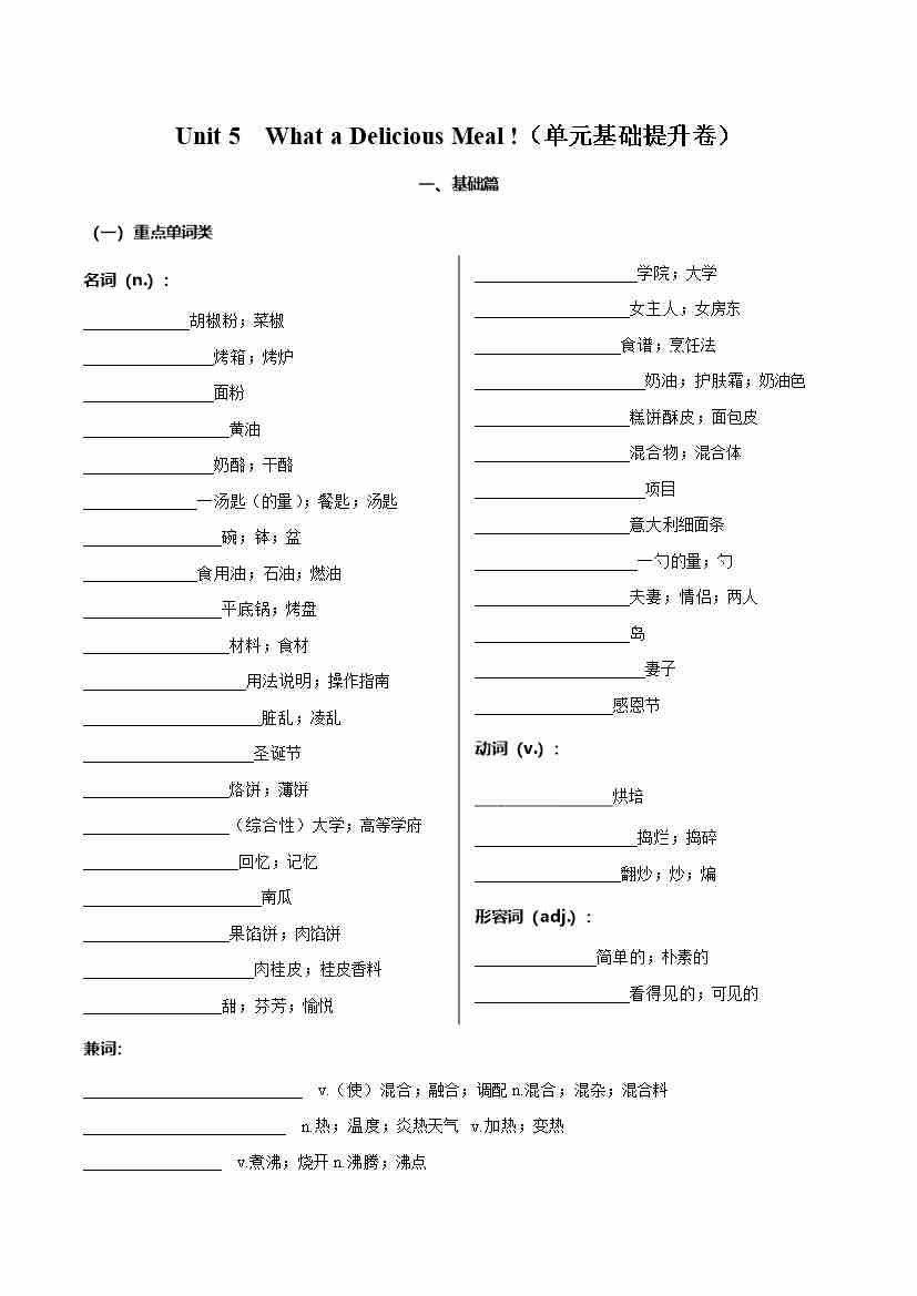 Unit 5 What a Delicious Meal !【单元基础提升卷】(原卷版)