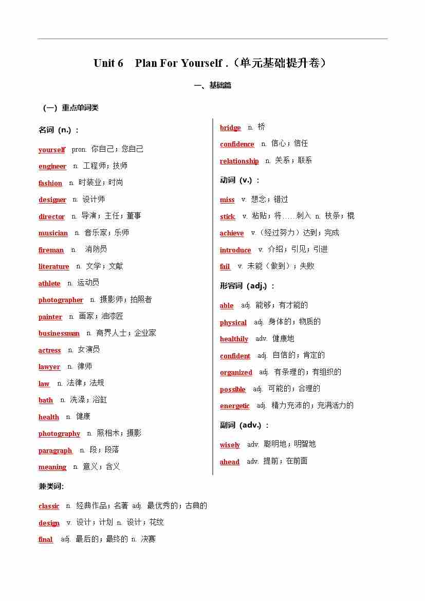 Unit 6 Plan For Yourself .【单元基础提升卷】(解析版)