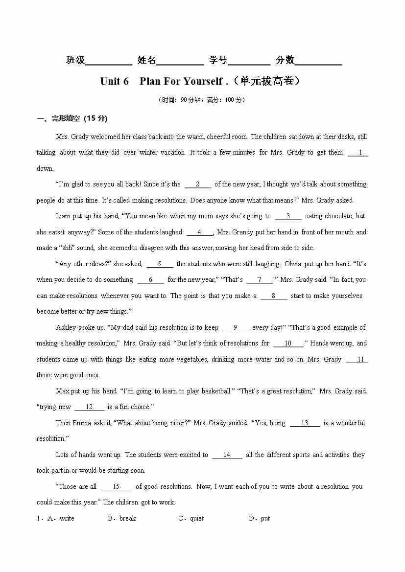 Unit 6 Plan For Yourself .【单元拔高卷】(原卷版)