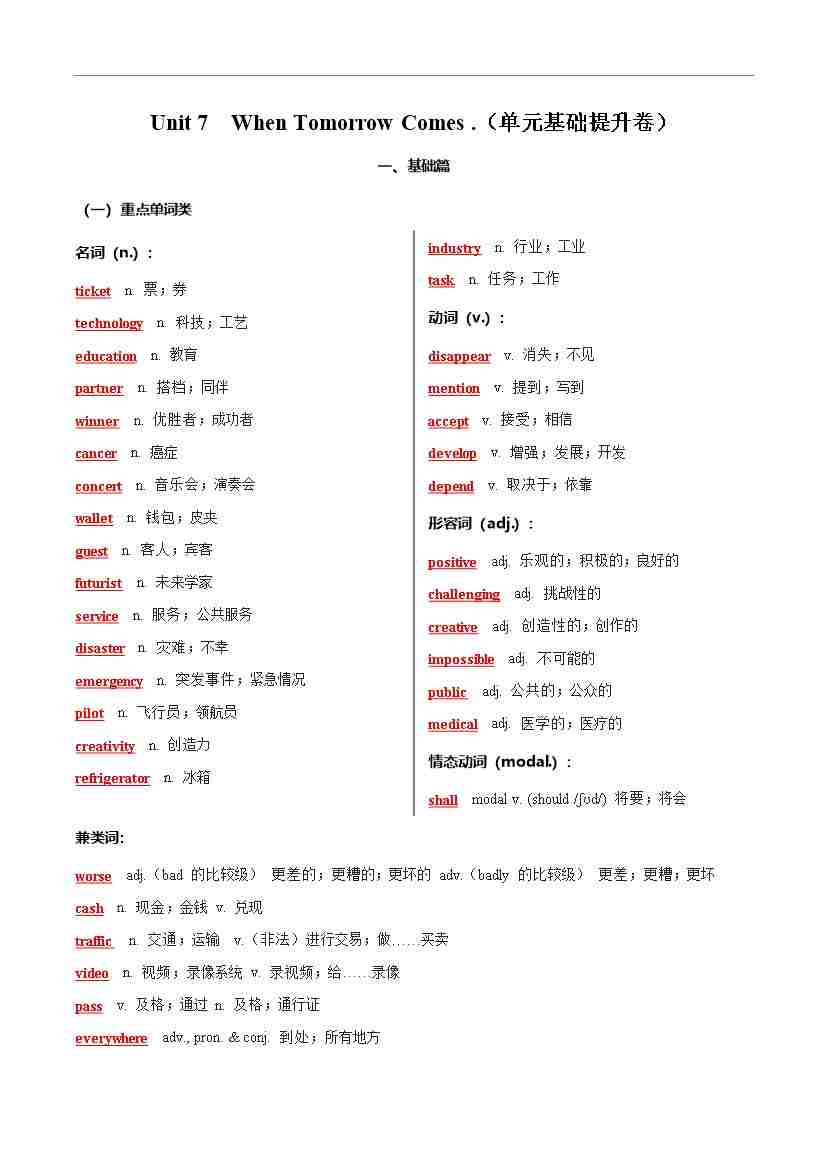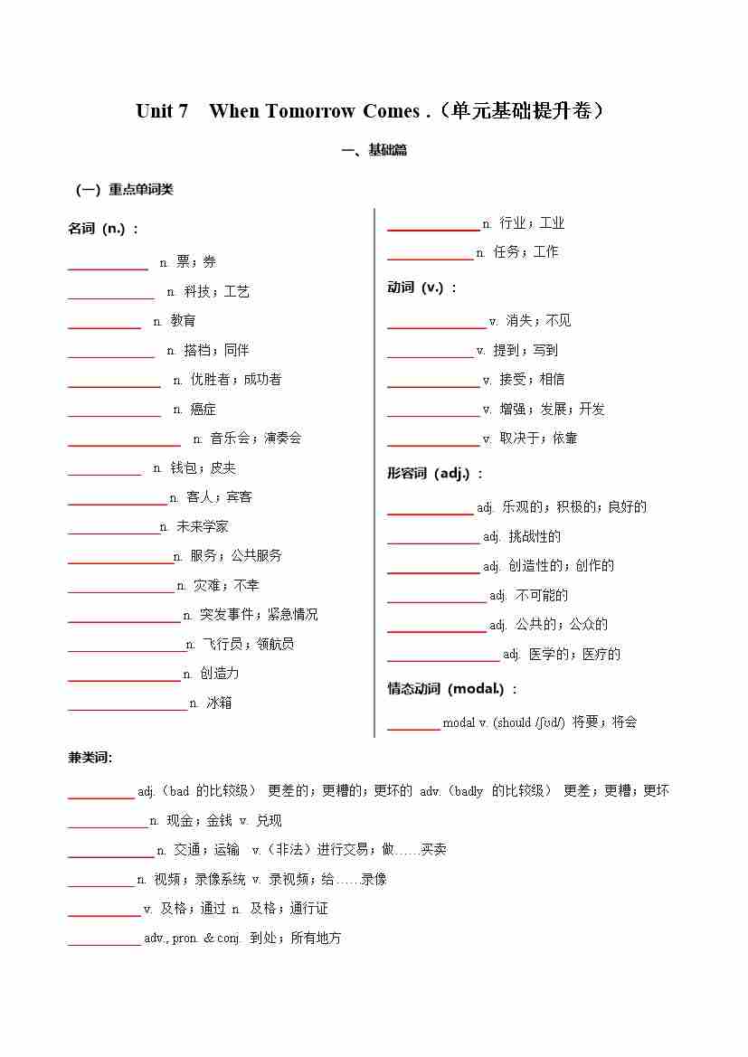 Unit 7 When Tomorrow Comes .【单元基础提升卷】(原卷版)