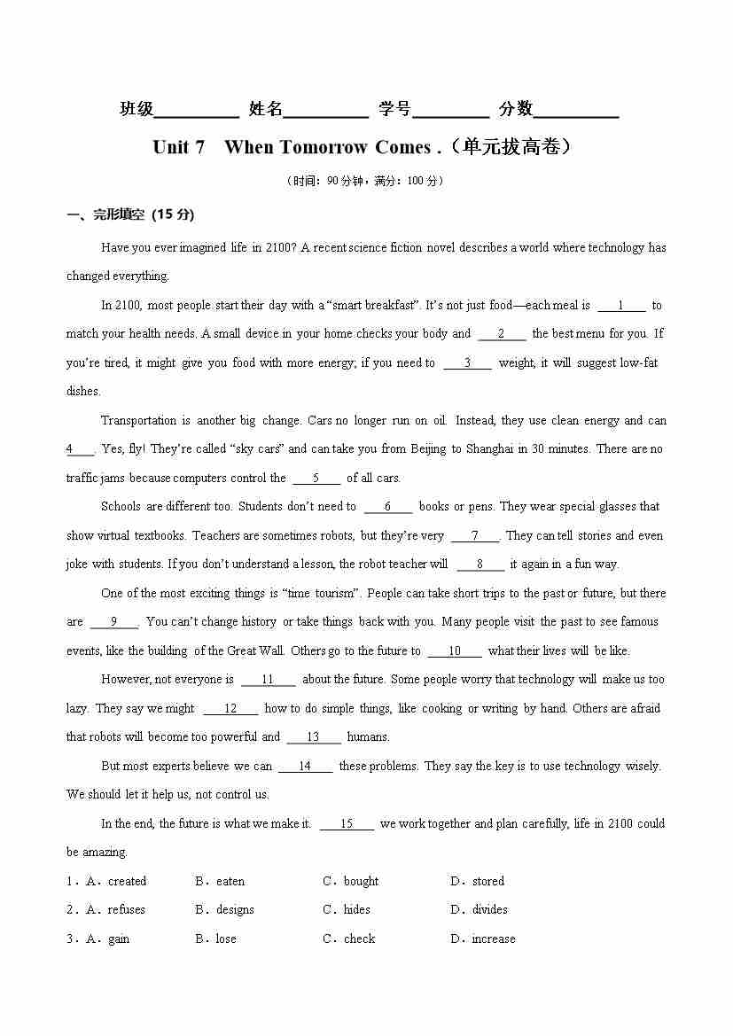 Unit 7 When Tomorrow Comes .【单元拔高卷】(原卷版)