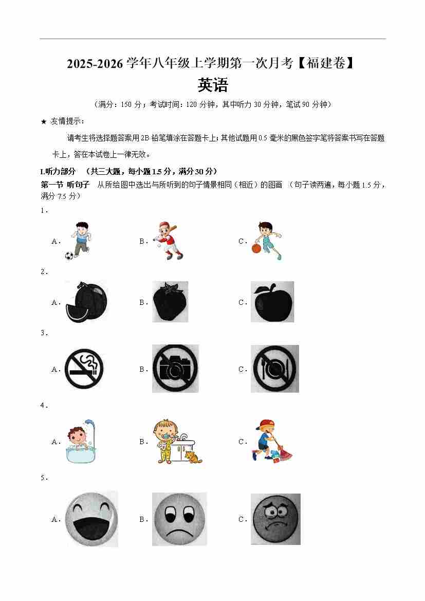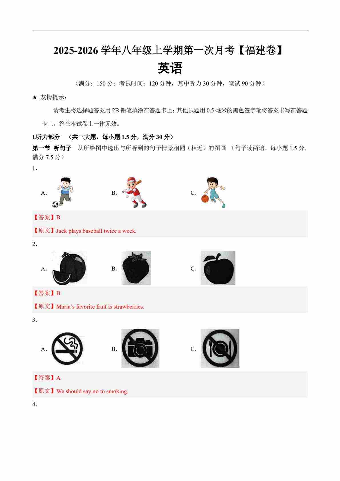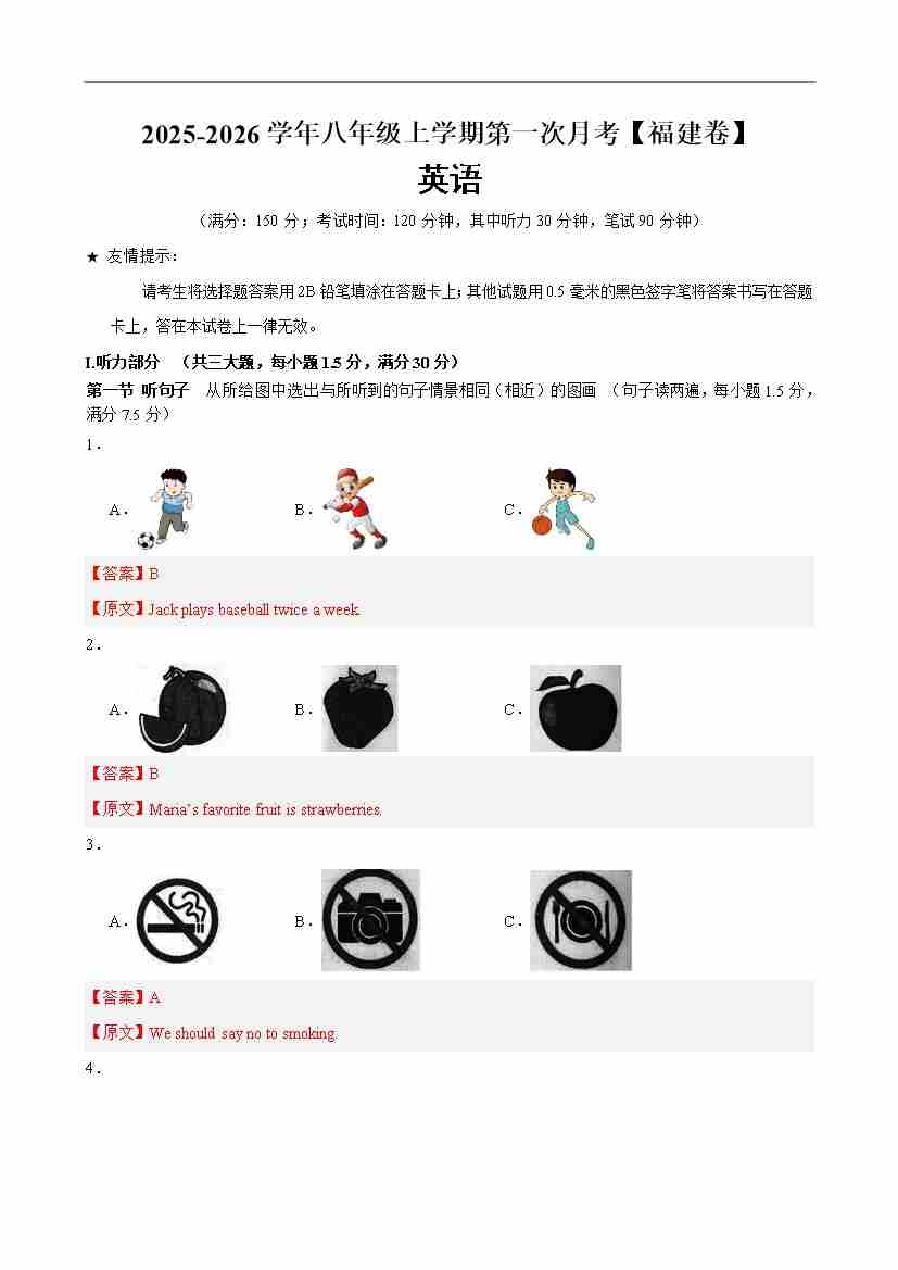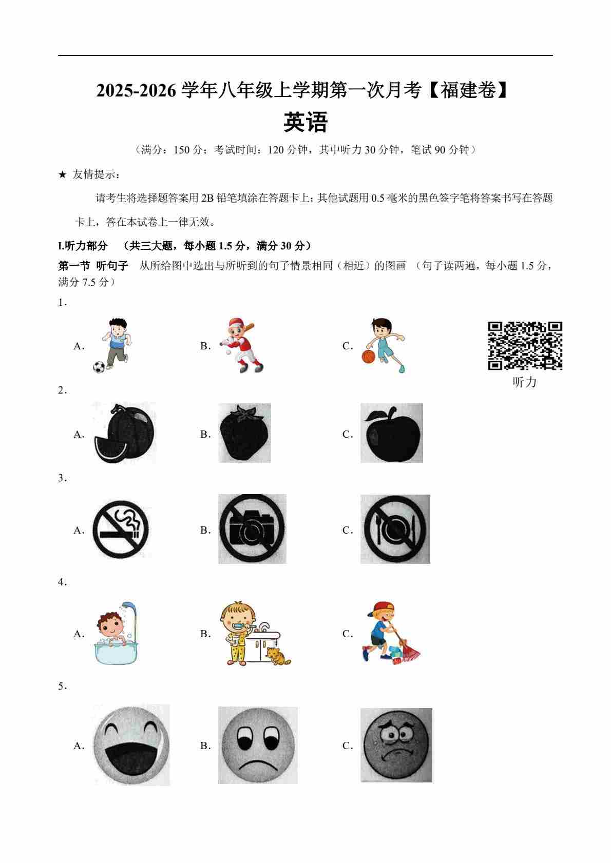 八年级福建第一次月考(原卷版)(扫码听力)PDF