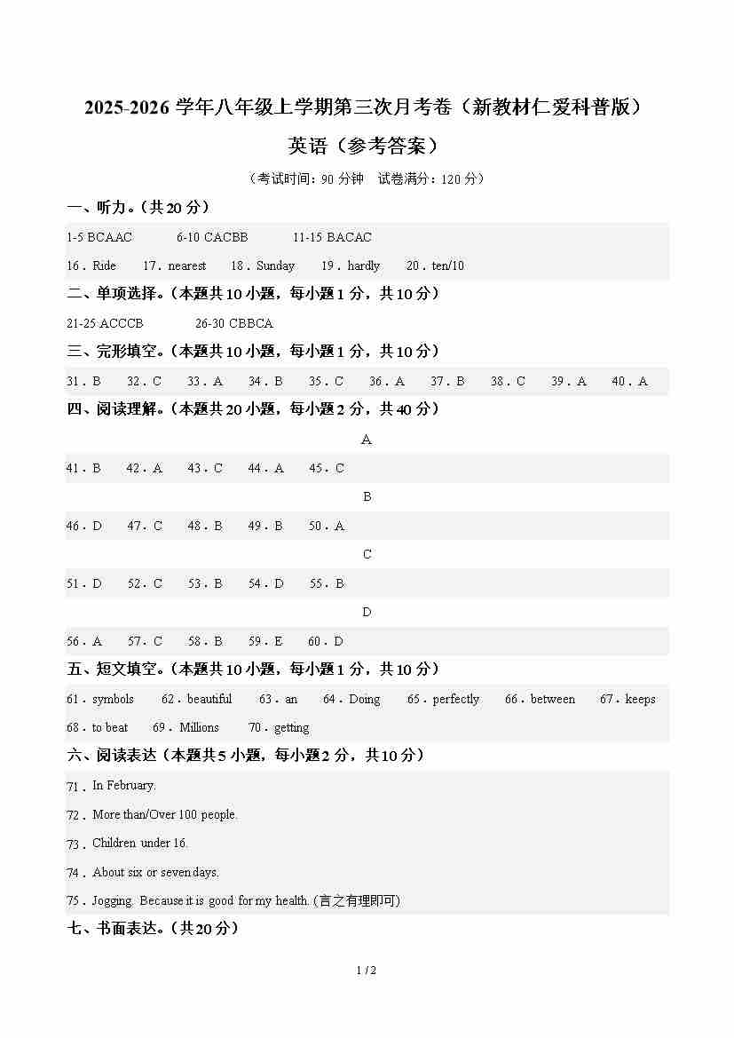 八年级英语第三次月考(听力音频)(新教材仁爱科普版)
