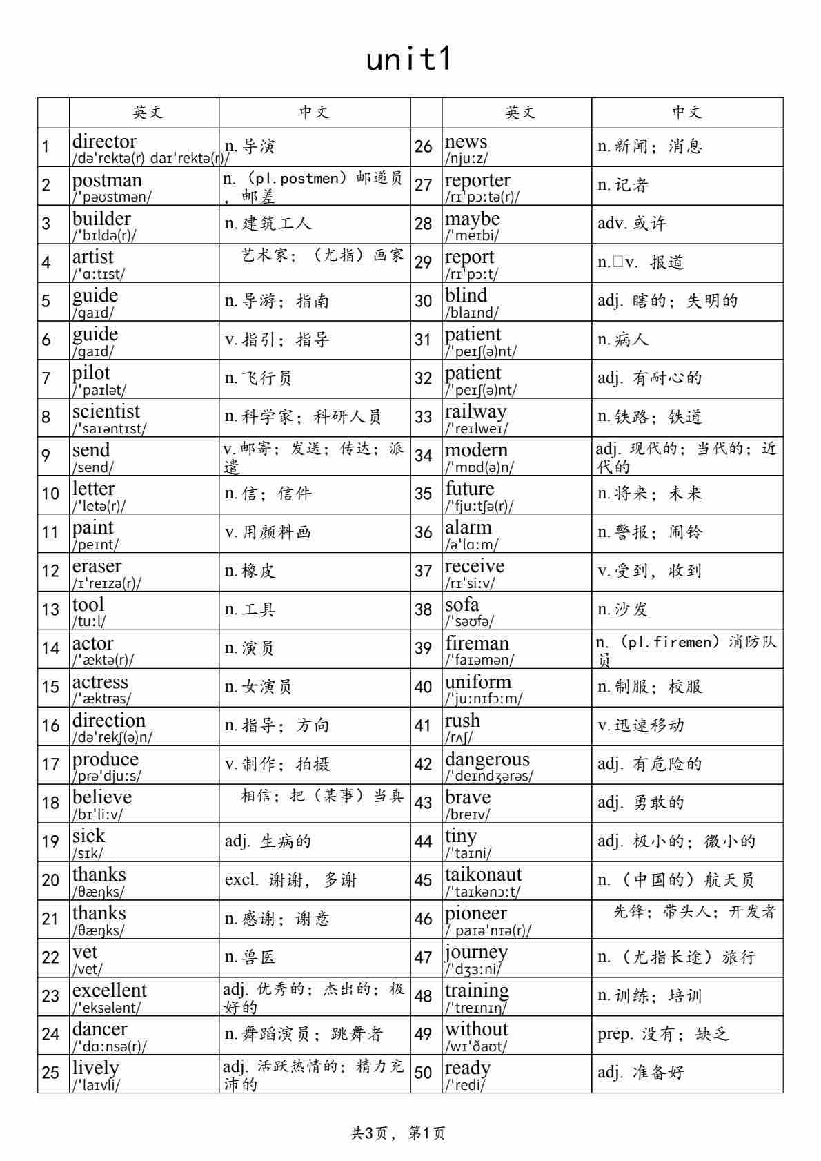 【仁爱】八上英语单词表