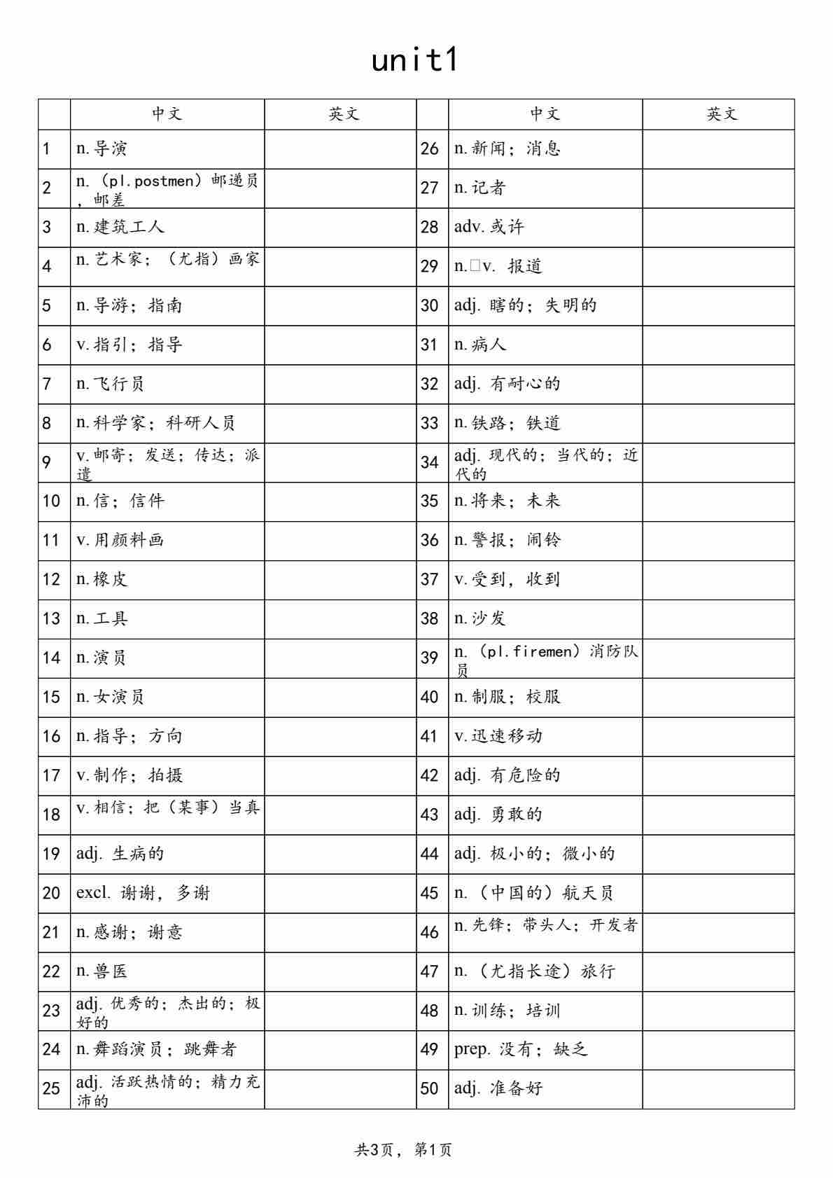 【仁爱】八上英语单词表默写