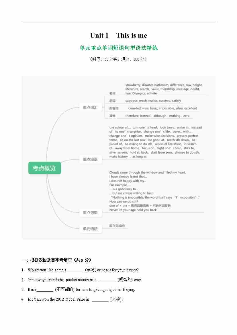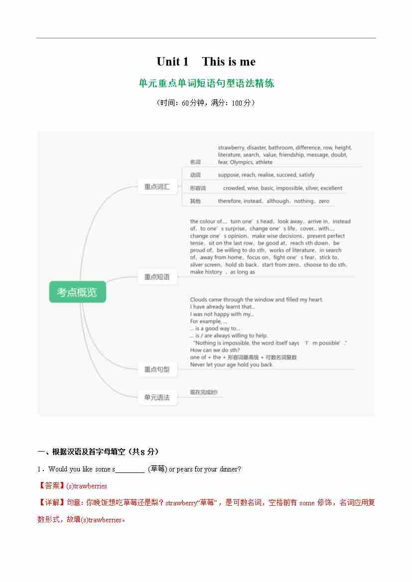 Unit 1 This is me 单词短语句型语法(教材考点精练)(解析版)