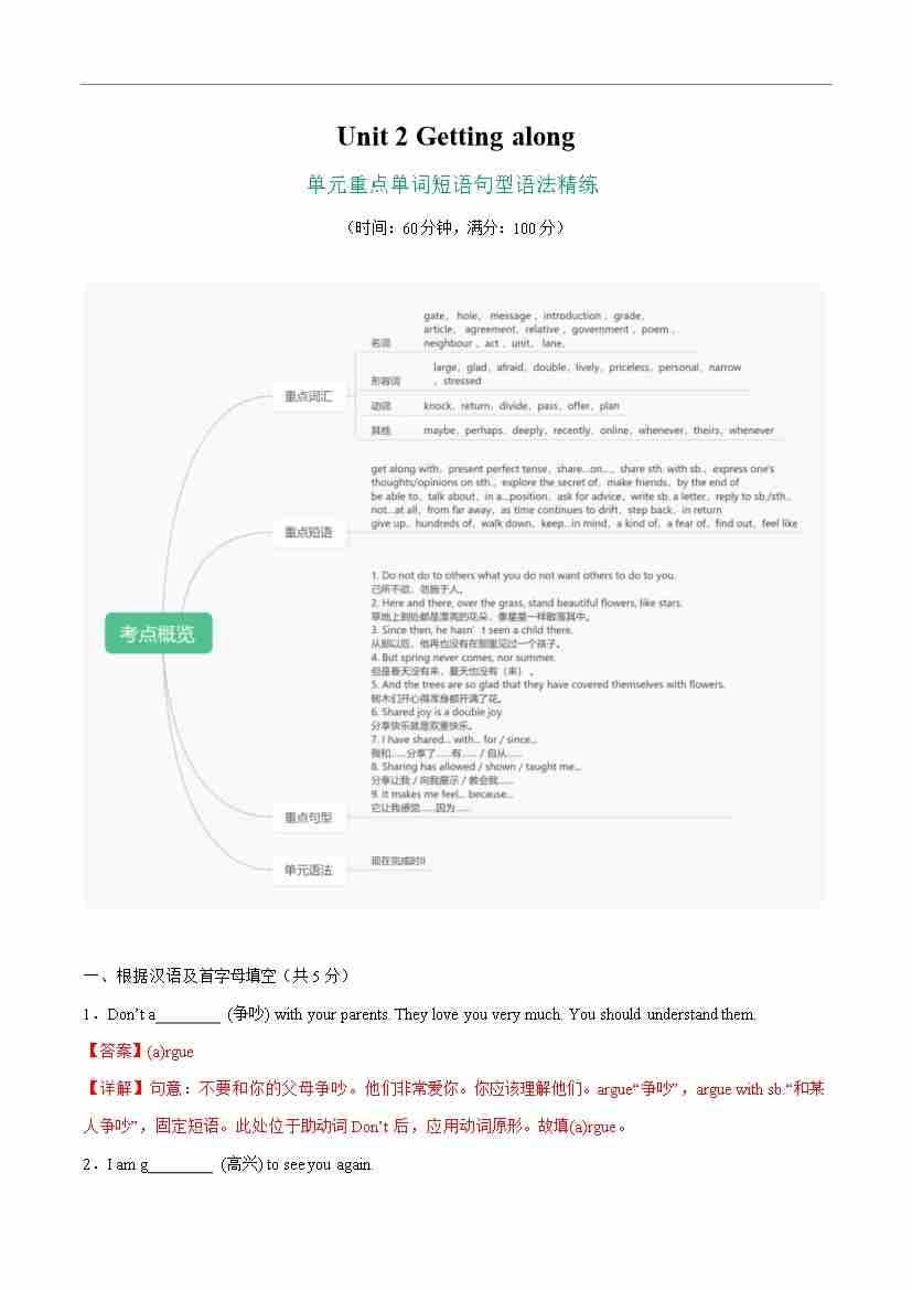 Unit 2 Getting along 单词短语句型语法(教材考点精练)(解析版)
