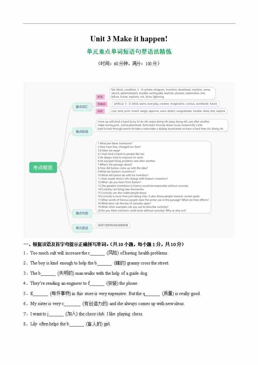 Unit 3 Make it happen! 单词短语句型语法(教材考点精练)(原卷版)