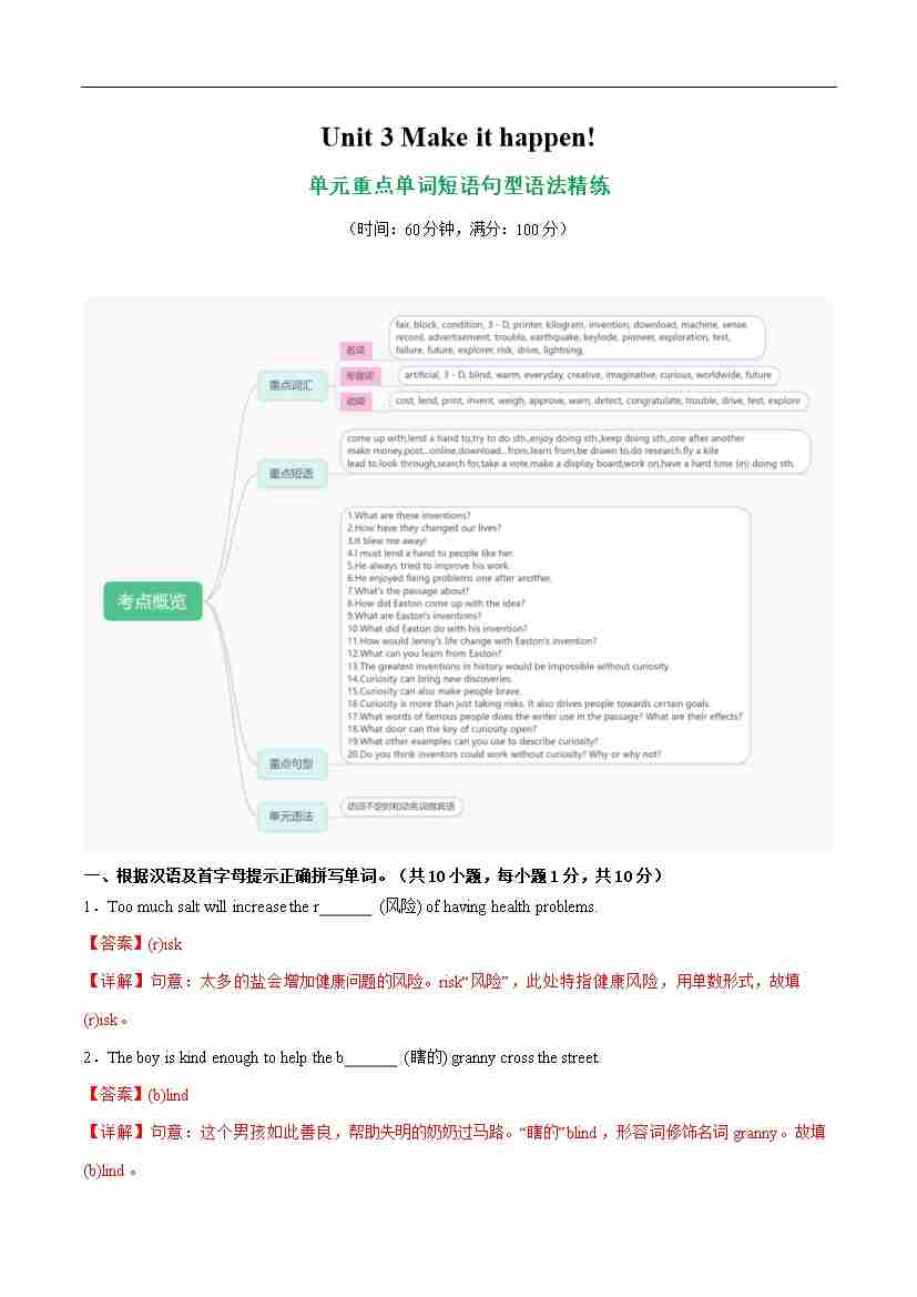 Unit 3 Make it happen! 单词短语句型语法(教材考点精练)(解析版)