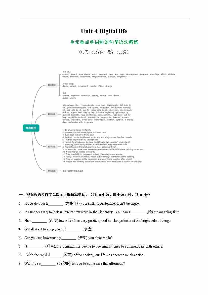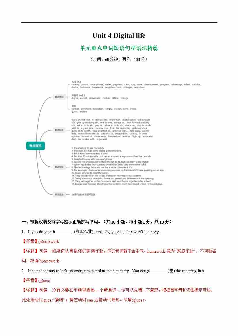 Unit 4 Digital life! 单词短语句型语法(教材考点精练)(解析版)