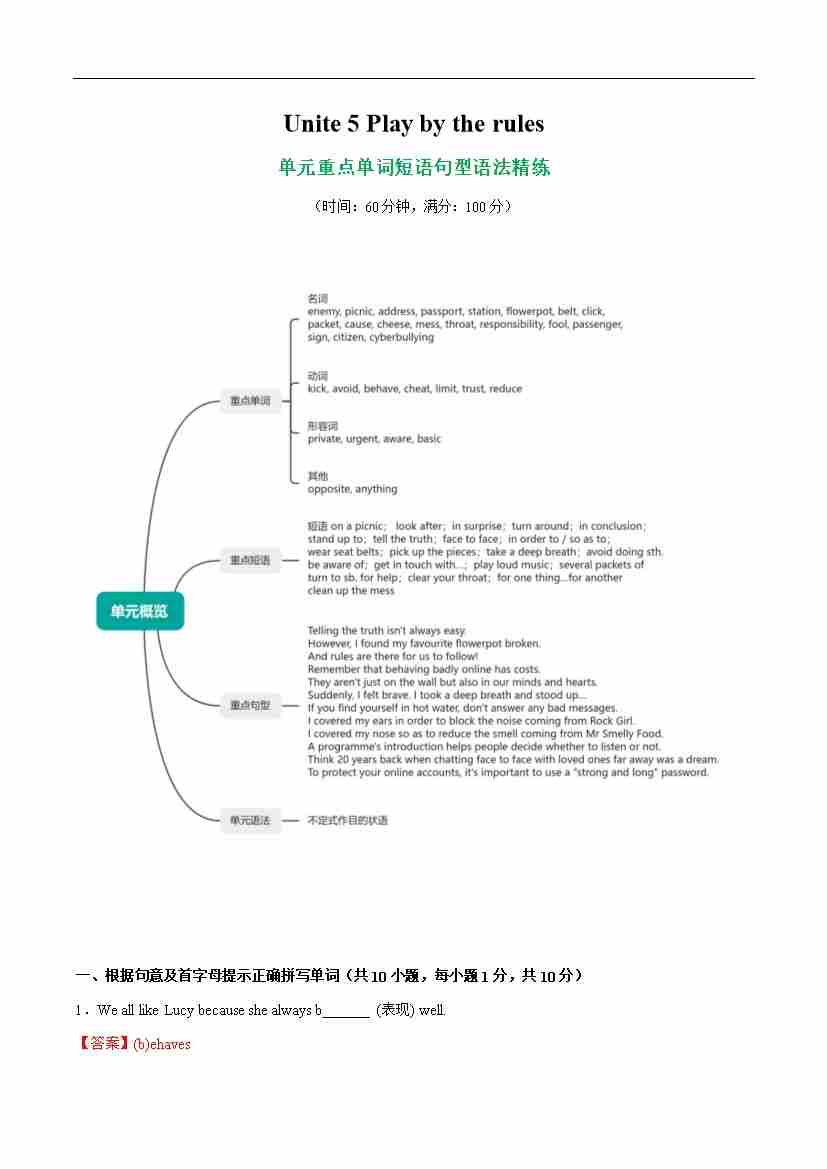 Unit 5 Play by the rules 单词短语句型语法(教材考点精练)(解析版)