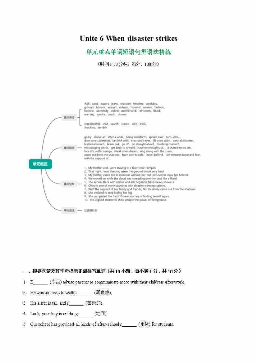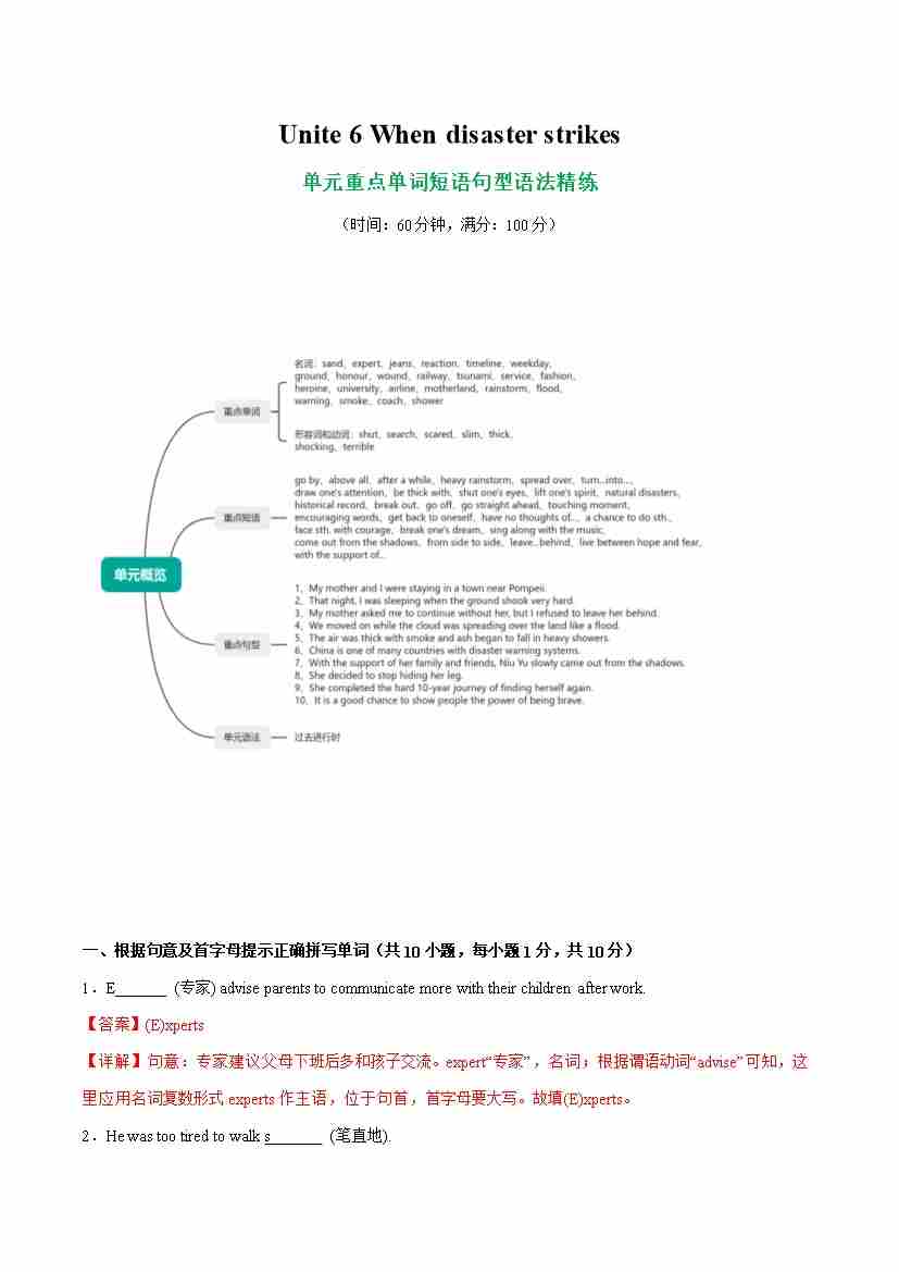 Unit 6 When disaster strikes 单词短语句型语法(教材考点精练)(解析版)