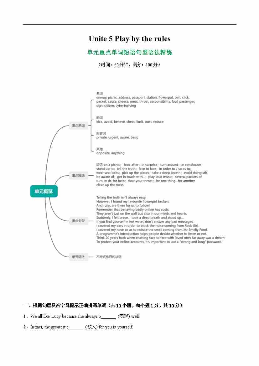 Unit 5 Play by the rules 单词短语句型语法(教材考点精练)(原卷版)
