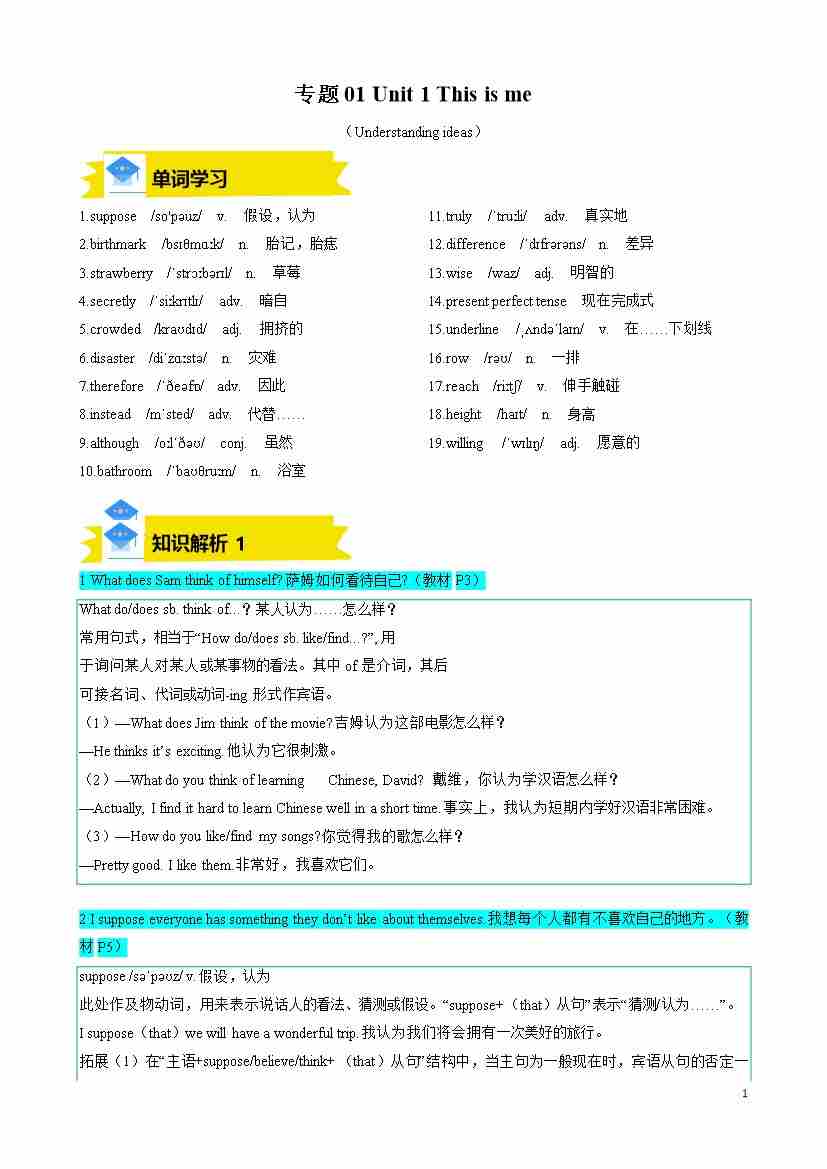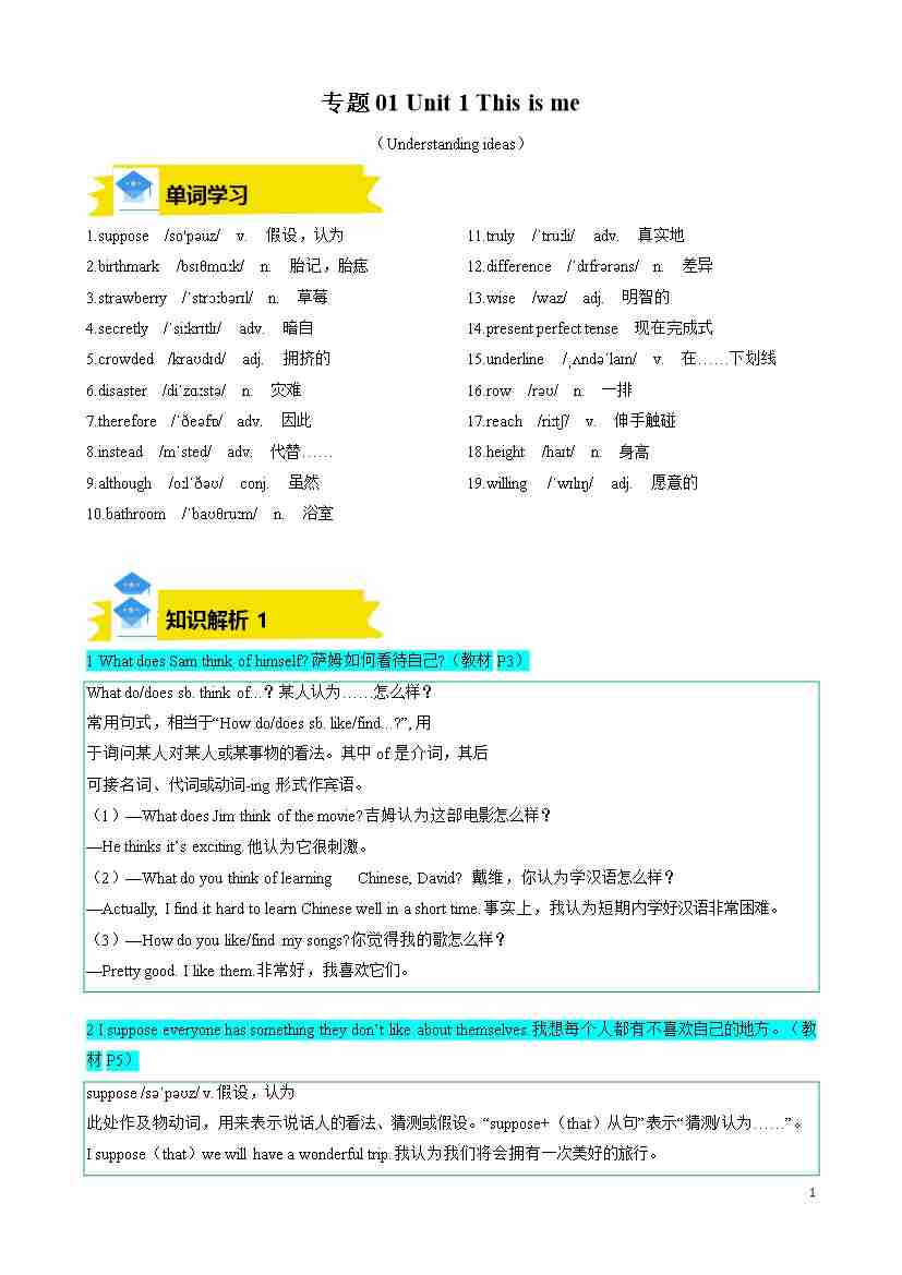 专题01 Unit 1 This is me(Understanding ideas)(教师版)【共13页】--七升八新课衔接