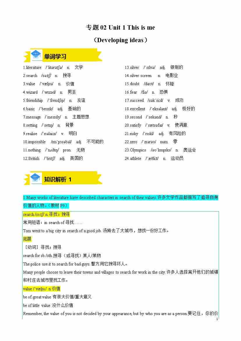 专题02 Unit 1 This is me(Developing ideas)(学生版)【共11页】--七升八新课衔接