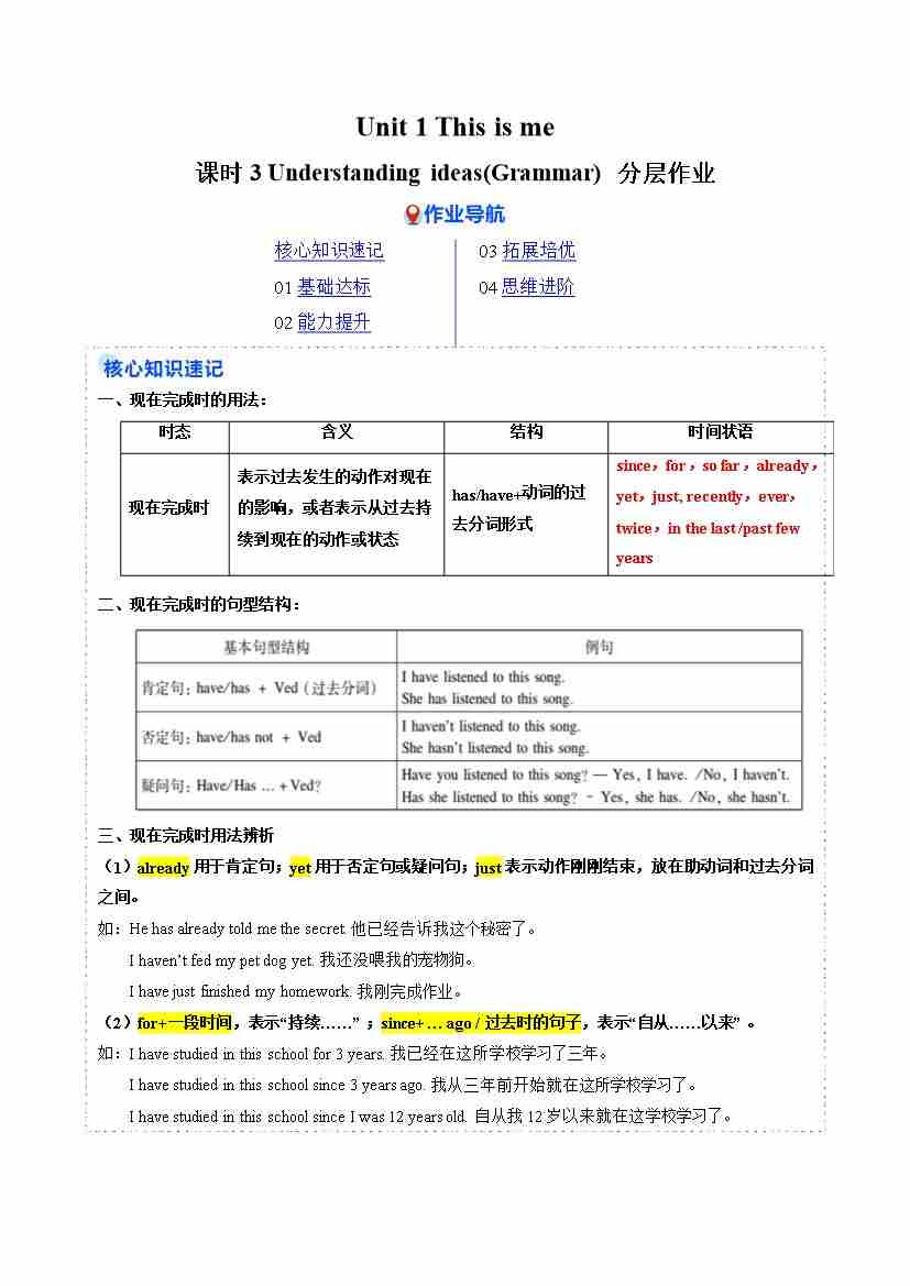 Unit 1 课时3 Understanding ideas(Grammar)(分层作业)(解析版)