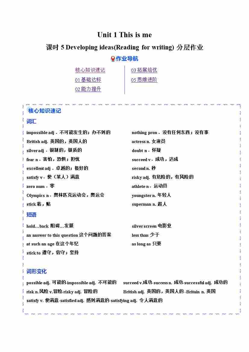 Unit 1 课时5 Developing ideas(Reading for writing)(分层作业)(解析版)