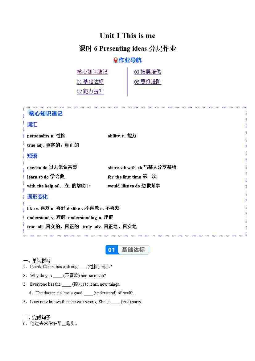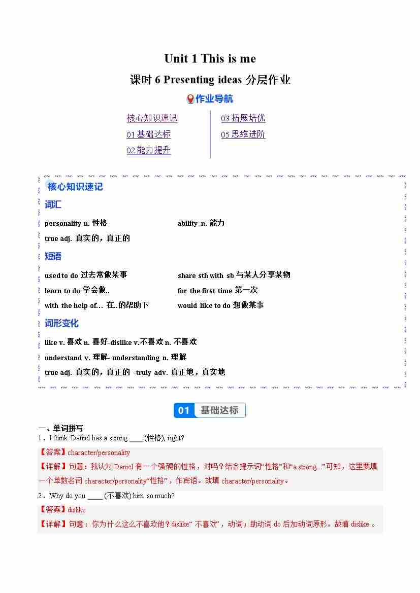 Unit 1 课时6 Presenting ideas(分层作业)(解析版)