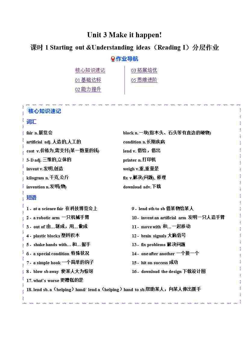 Unit 3 课时1 Starting out --Understanding ideas(Reading Ⅰ)(分层作业)(原卷版)