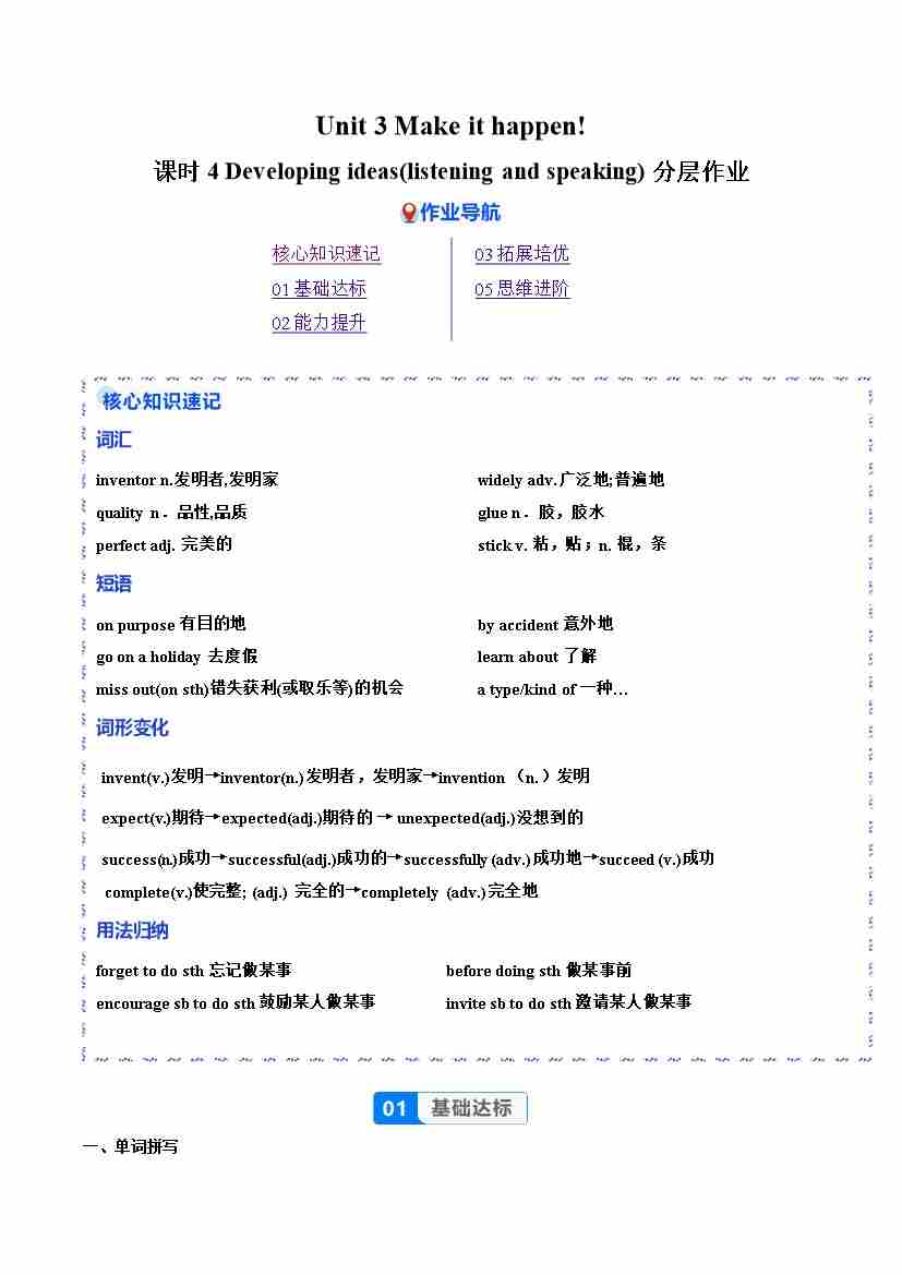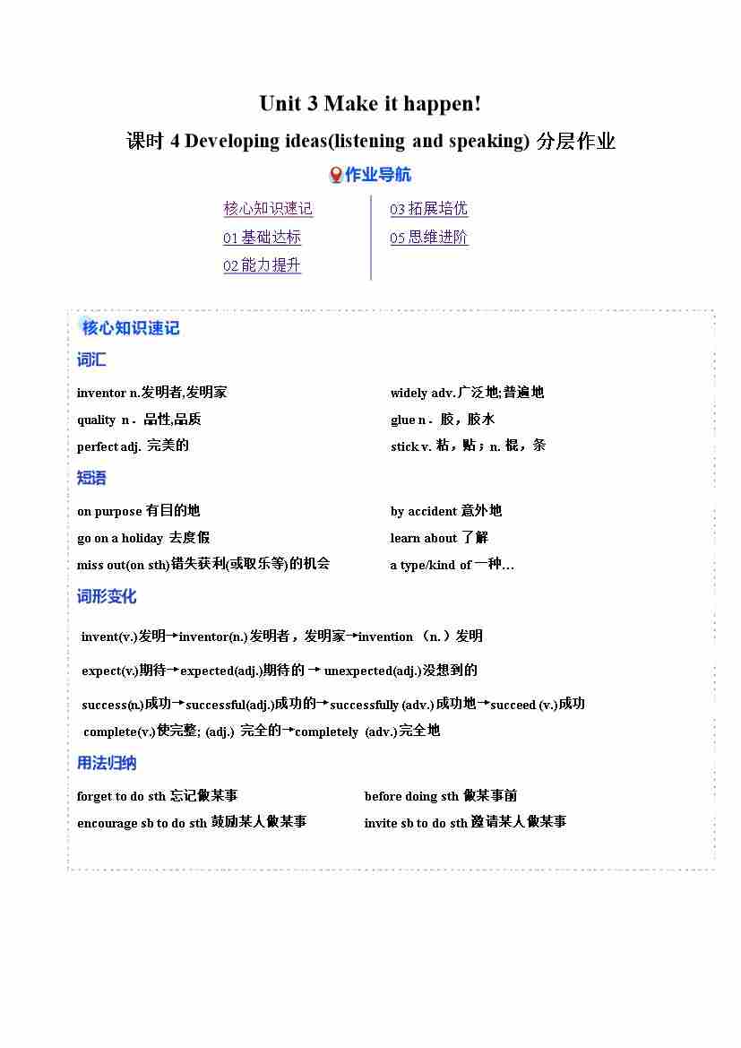 Unit 3 课时4 Developing ideas(listening and speaking)(分层作业)(原卷版)
