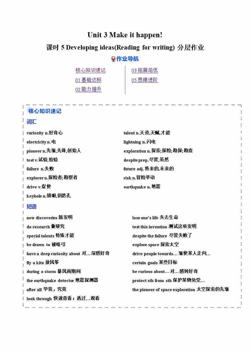 Unit 3 课时5 Developing ideas(Reading for writing)(分层作业)(原卷版)