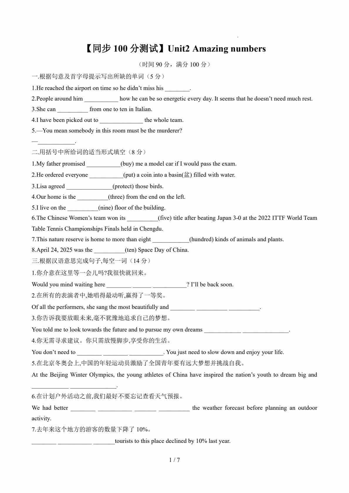 Unit2 Amazing numbers(原卷版)