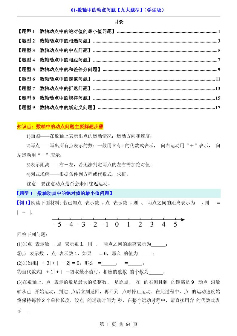 【2025版甄选好题】人教版七年级上册数学重难点题型总结(3大模块182种题型787题)(学生版)
