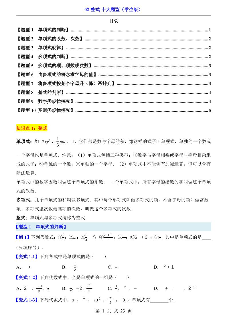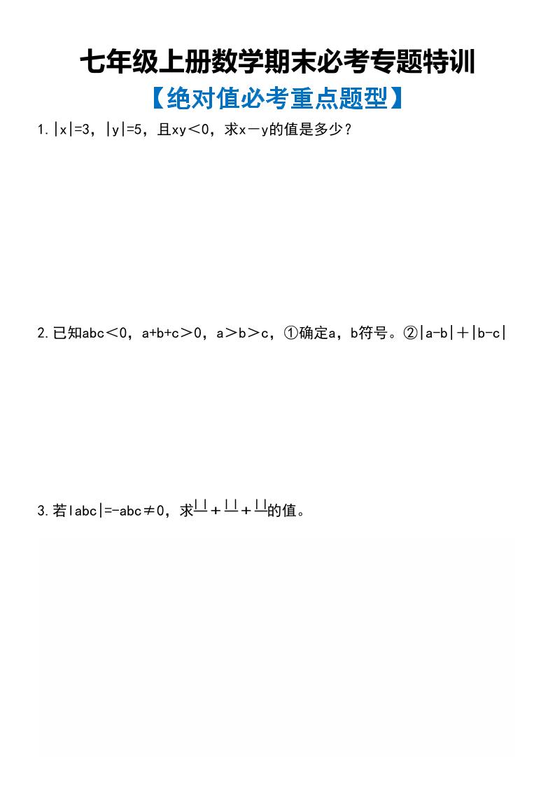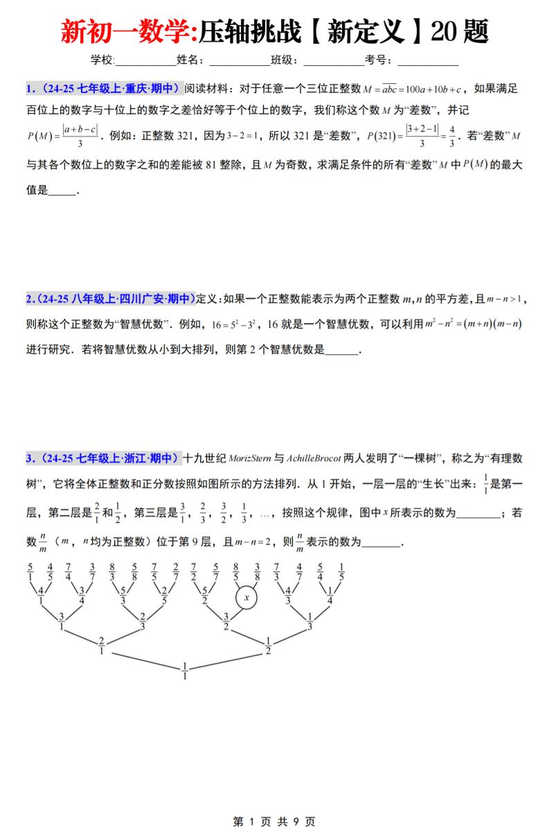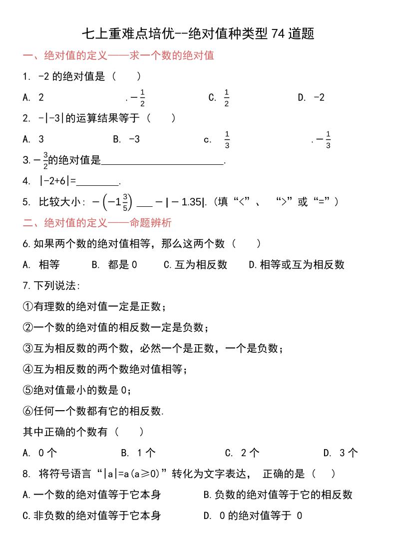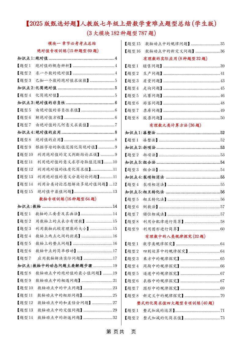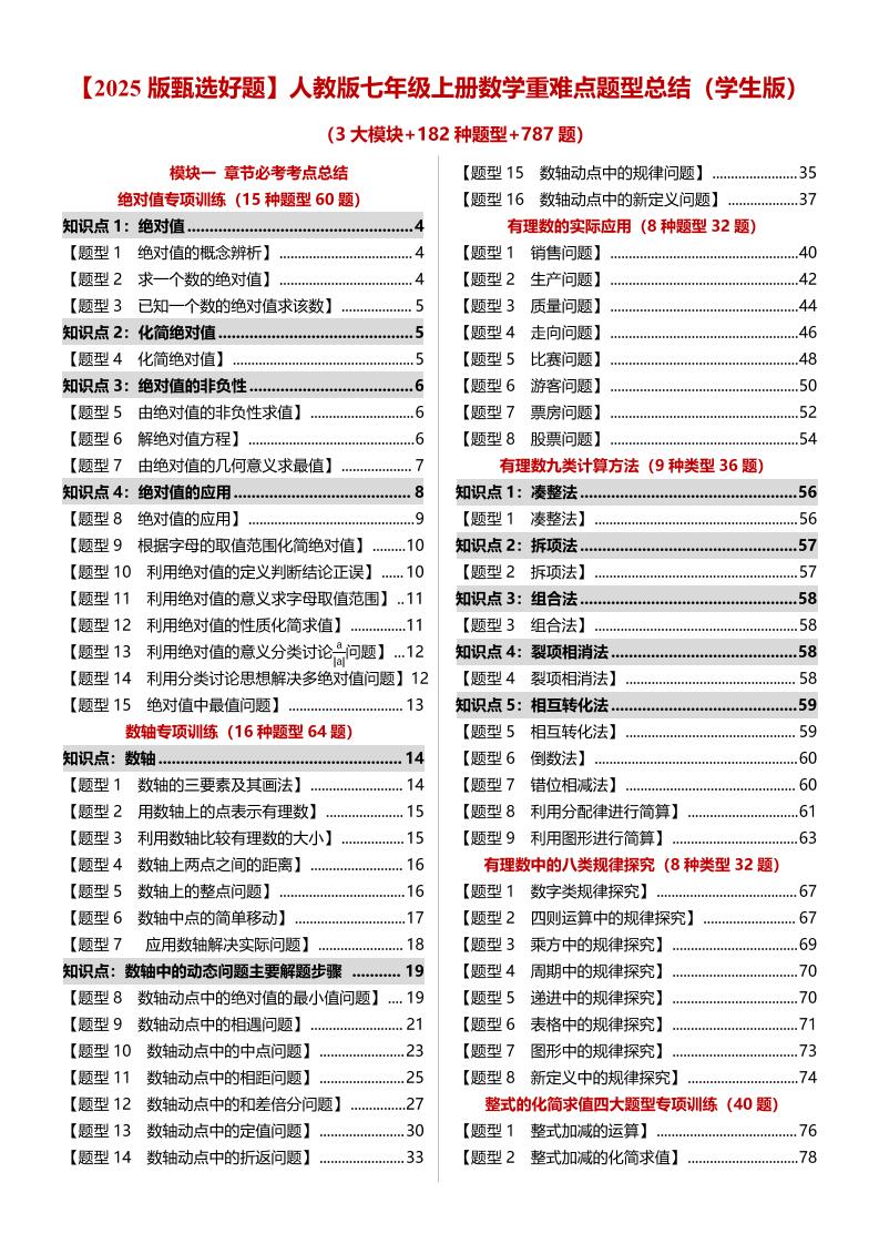 (精编版)【2025版甄选好题】人教版七年级上册数学重难点题型总结(3大模块182种题型787题)(学生版)