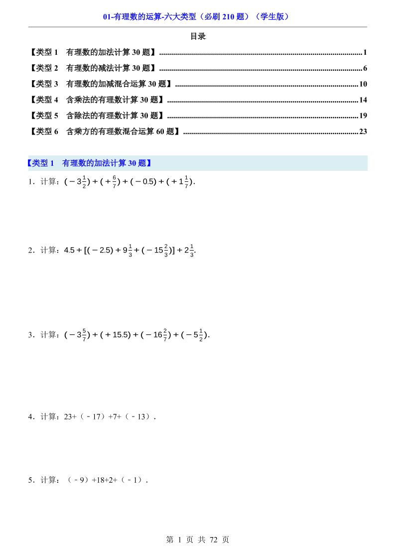 01-有理数的运算-六大类型(必刷210题)