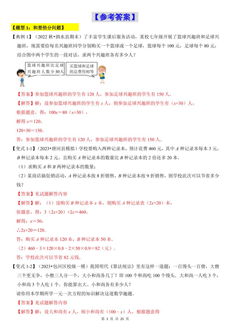 一元一次方程常考实际应用(十四大类型)(解析版)