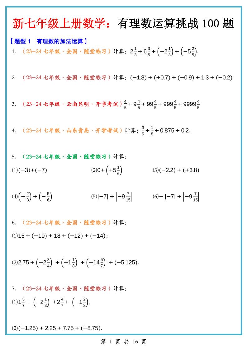 01-有理数的运算-八大题型(专练100题)