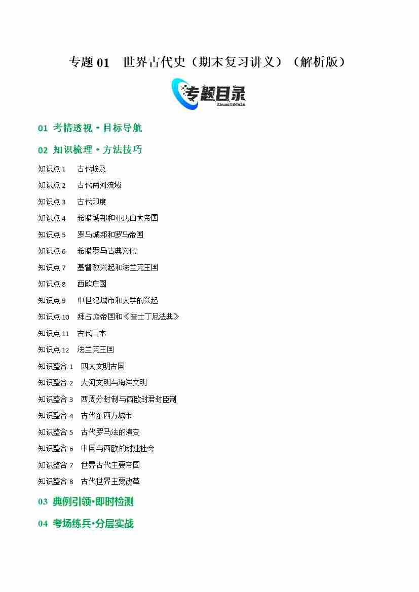 专题01 世界古代专题01 世界古代史(期末复习讲义) (教师版)
