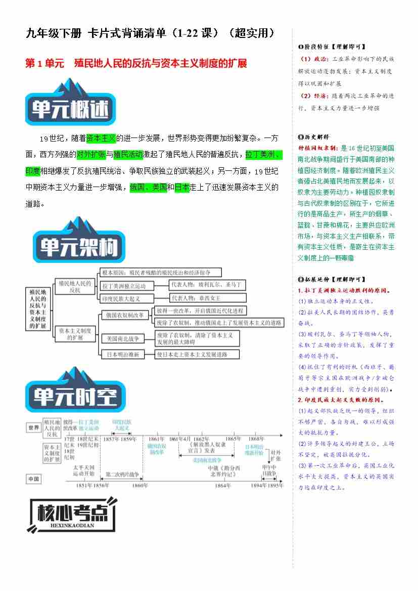 专题02 九下历史期末复习整本书知识清单(期末复习知识清单)