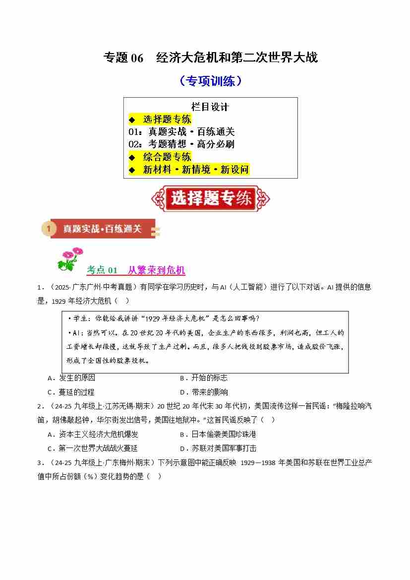 专题06 经济大危机和第二次世界大战(期末复习专项训练)(学生版)