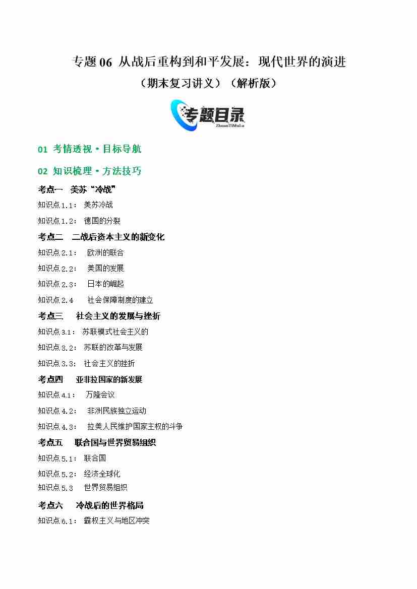 专题06 从战后重构到和平发展:现代世界的演进(期末复习讲义) (解析版)