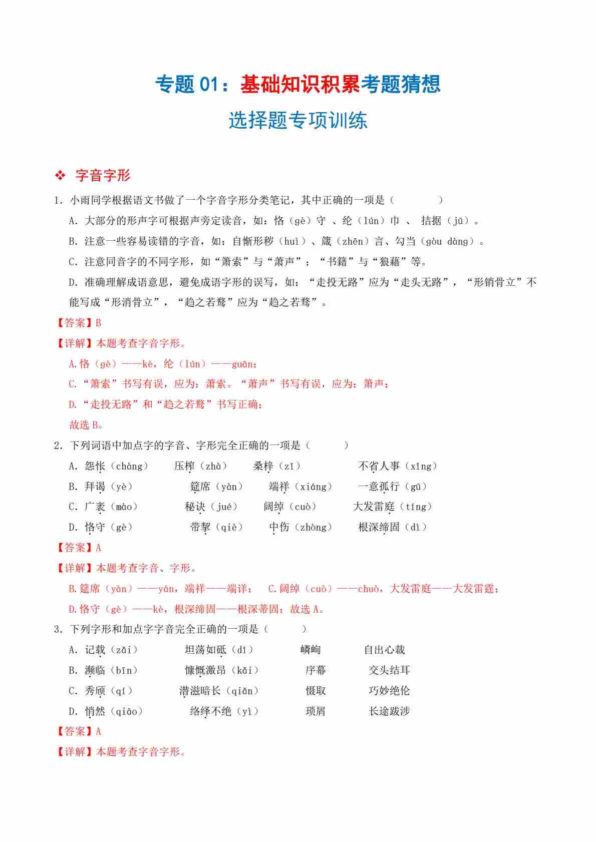 专题01 基础知识积累(选择题)(考题猜想)(解析版)