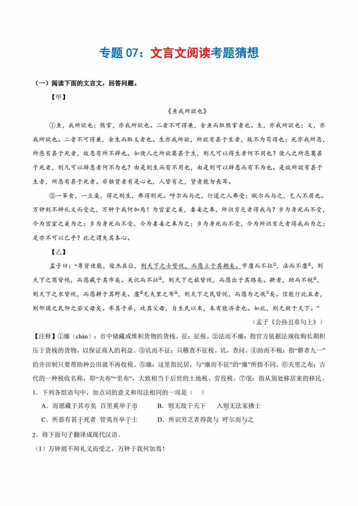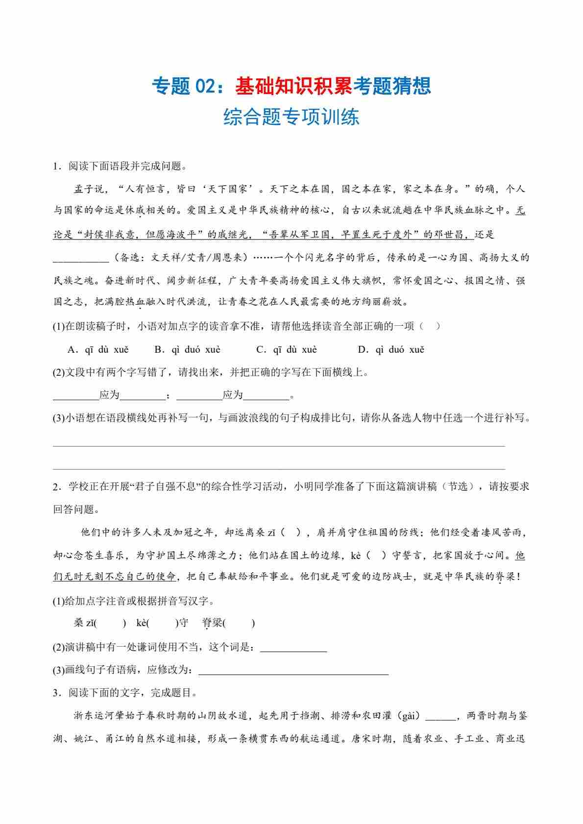 专题02 基础知识积累(综合题)(考题猜想)(原卷版)