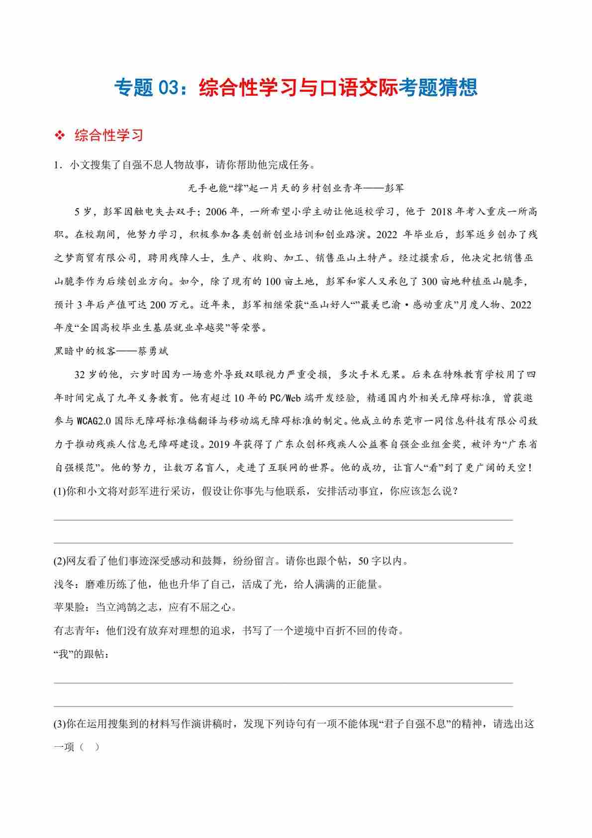 专题03 综合性学习与口语交际(考题猜想)(原卷版)