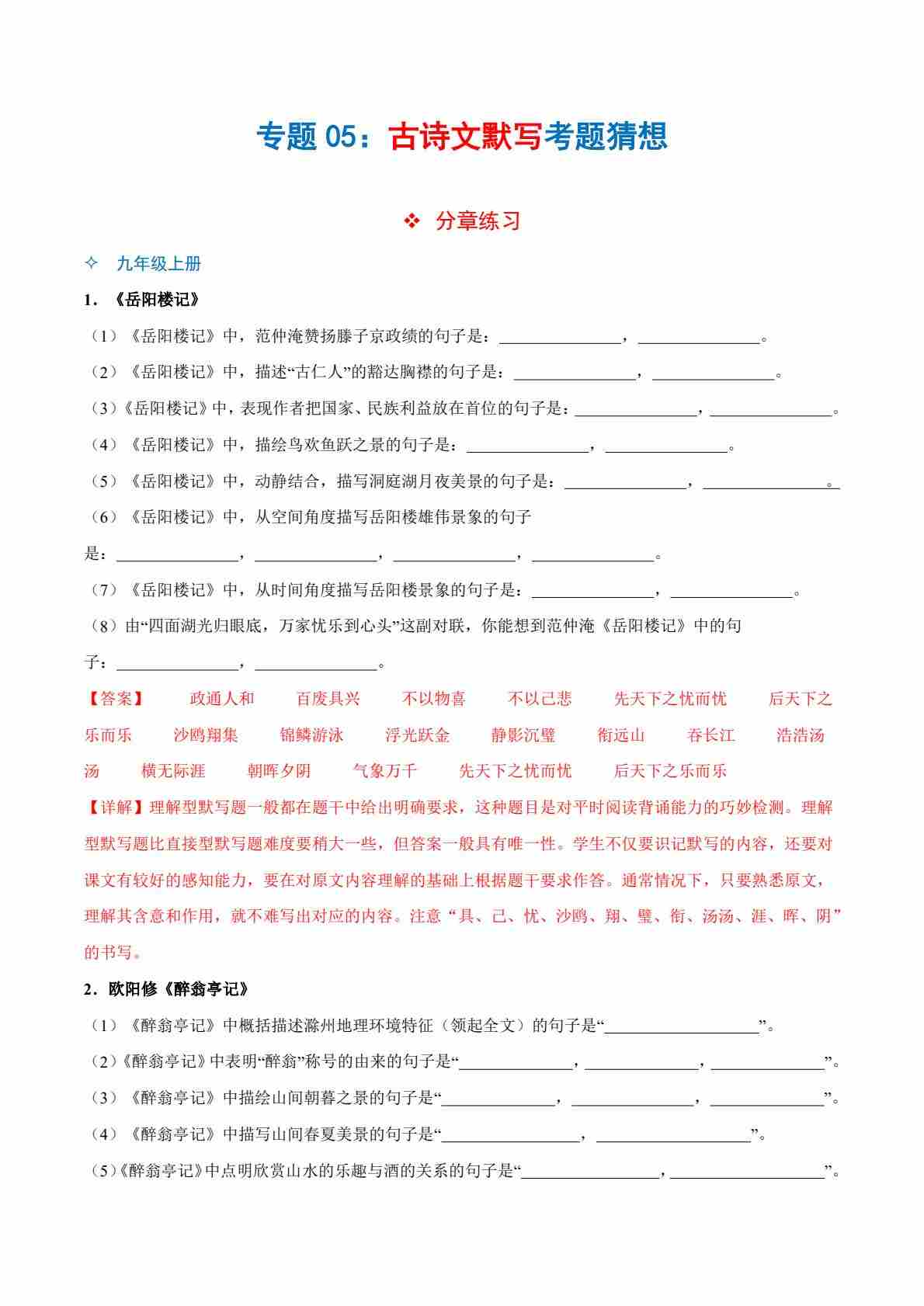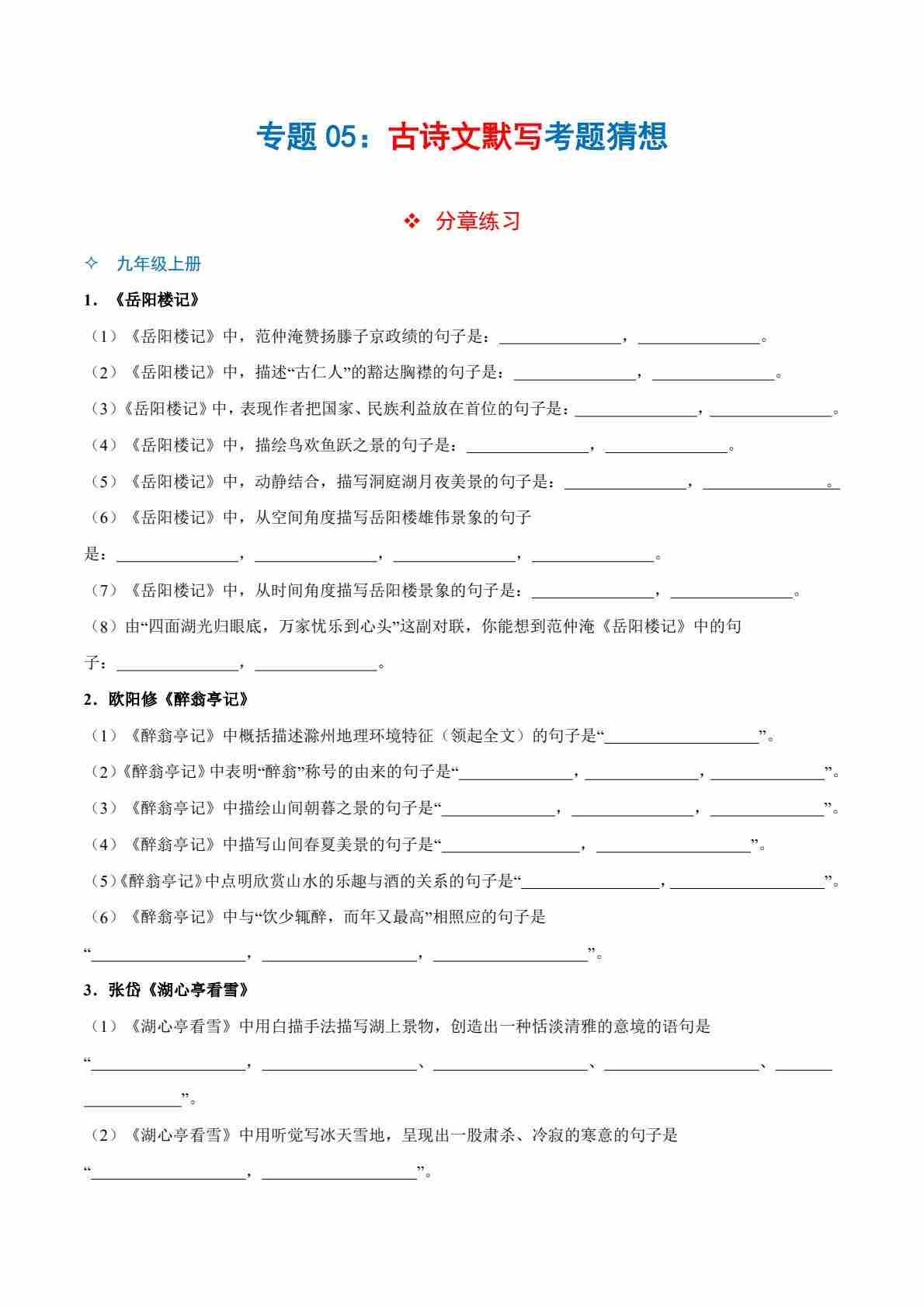 专题05 名篇名句默写(考题猜想)(原卷版)