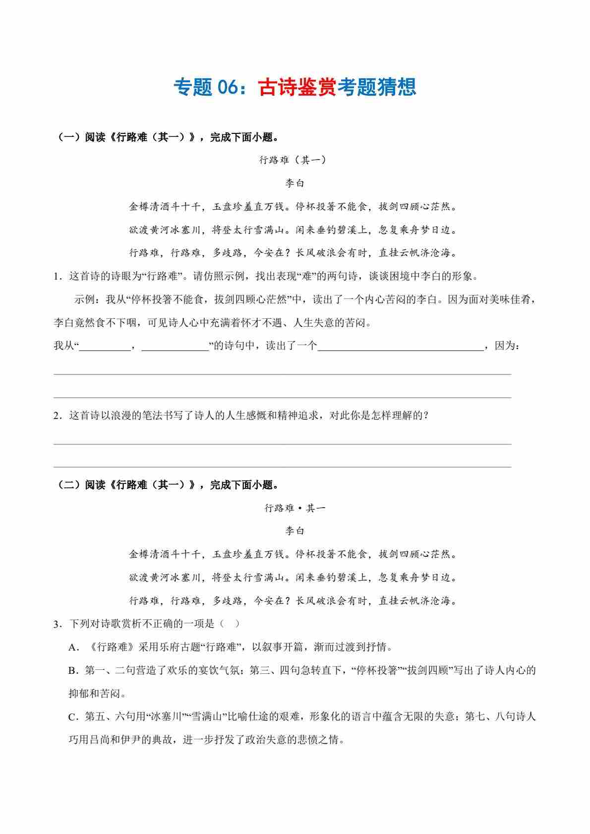 专题06 古诗鉴赏(考题猜想)(原卷版)