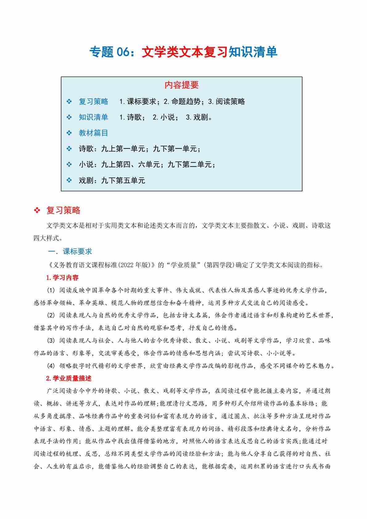 专题06 文学类文本阅读(知识清单)-2024-2025学年九年级语文上学期期末考点大串讲(统编版)